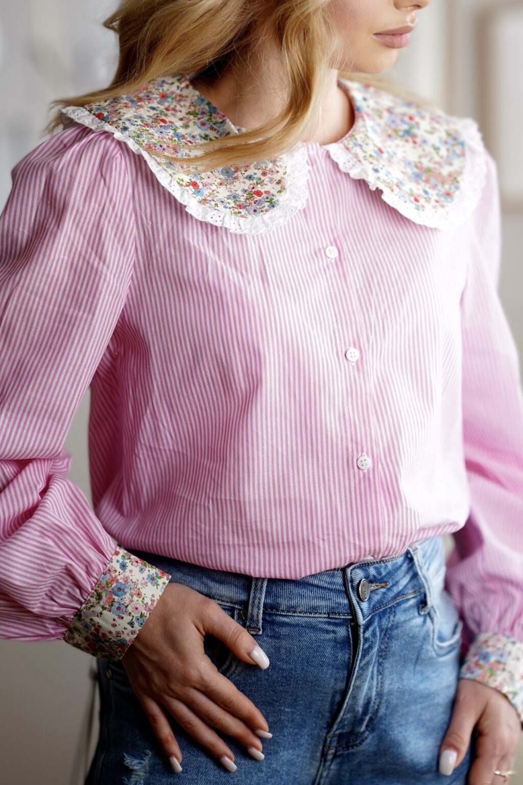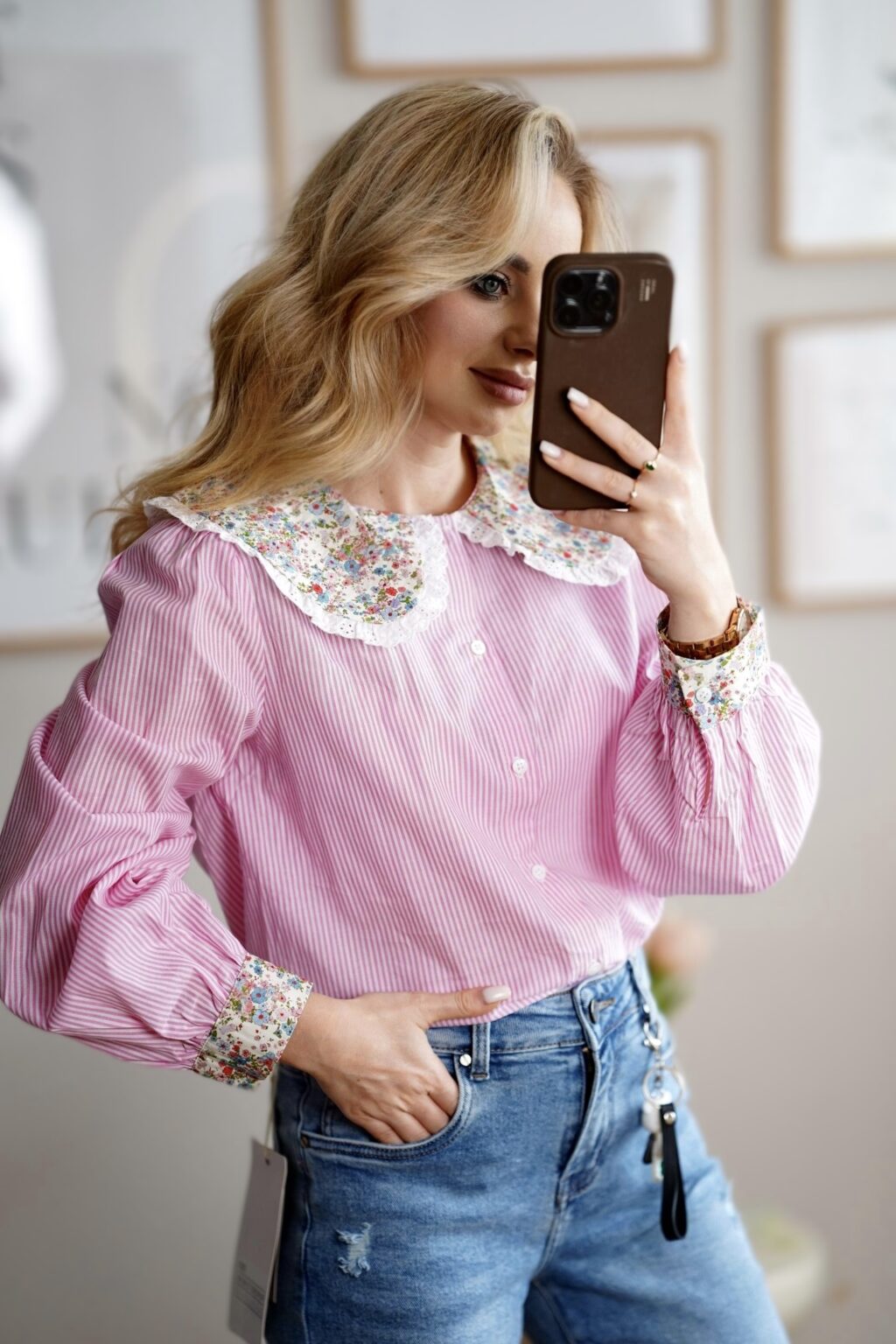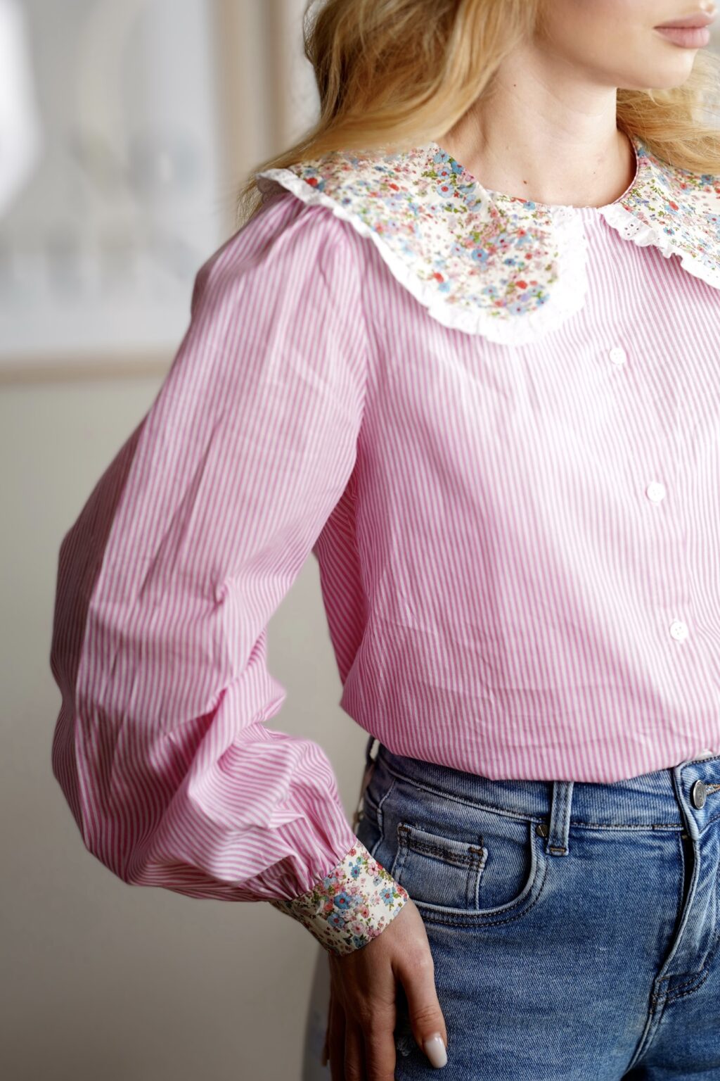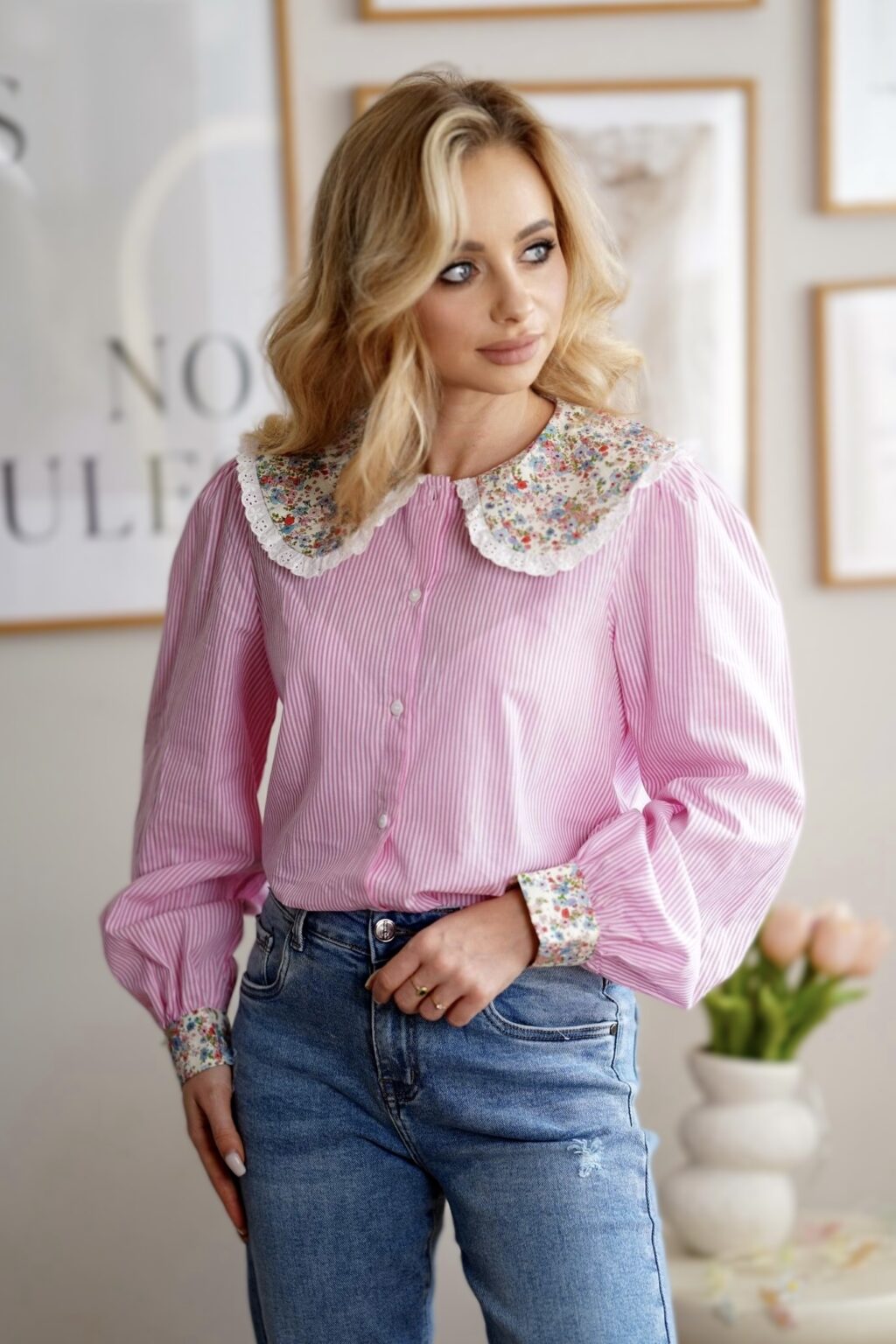 Bawełniana koszula z kołnierzykiem FLORA | różowa 🩷