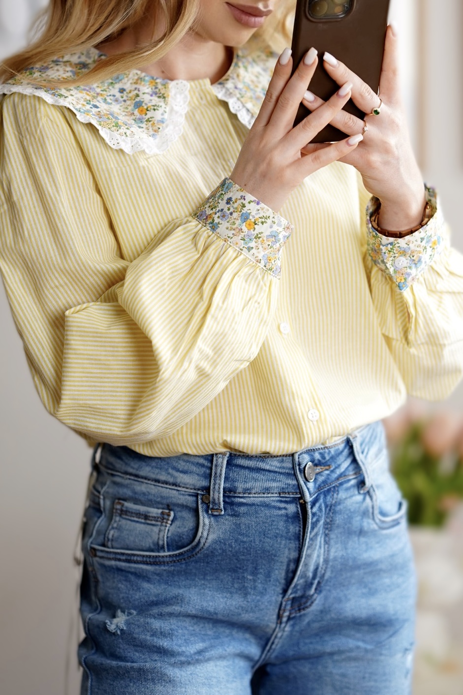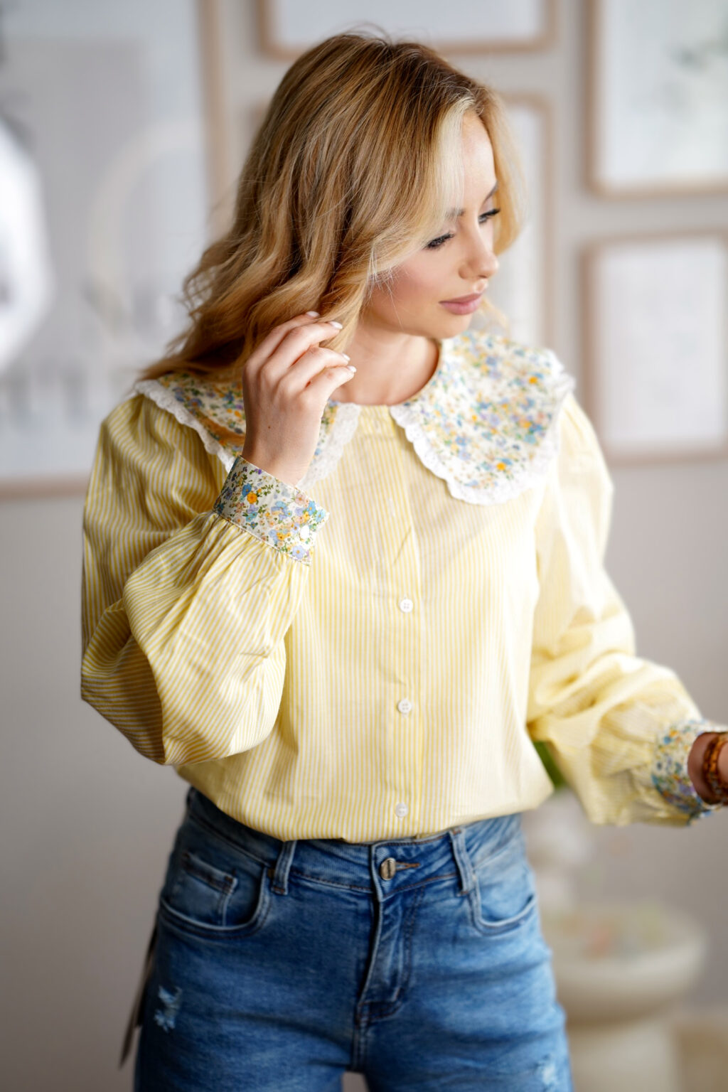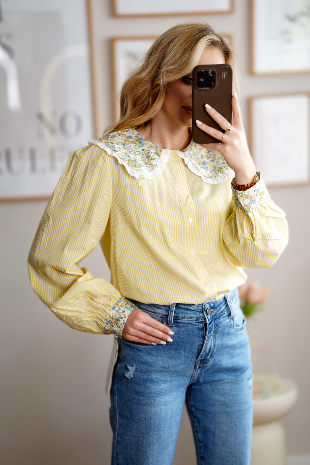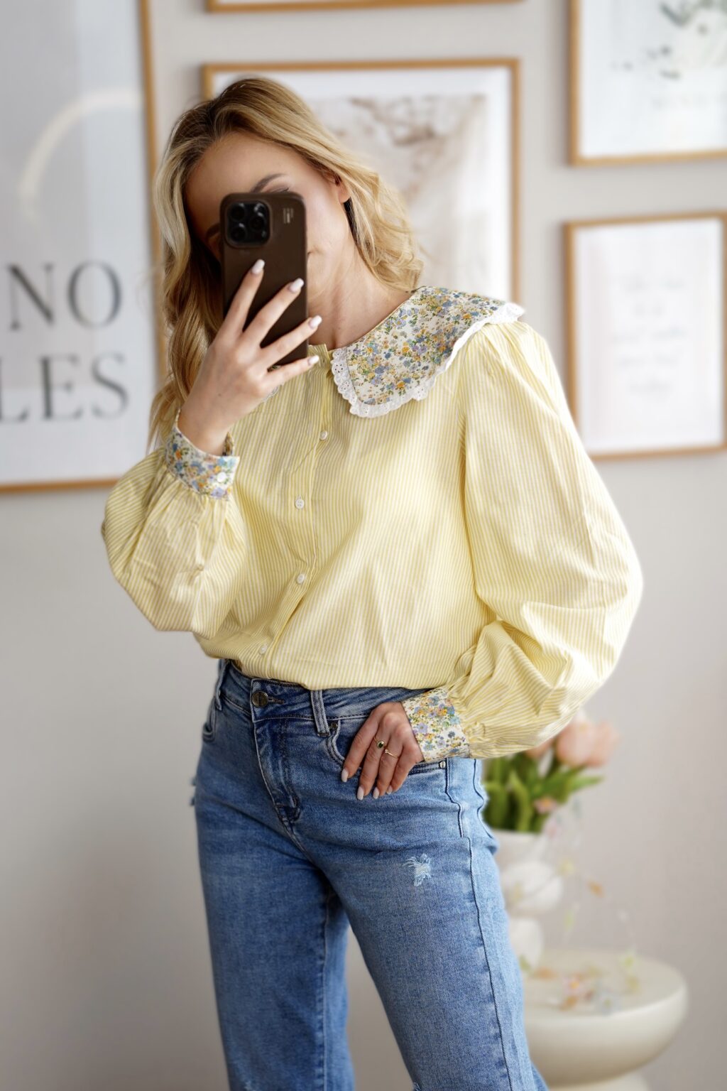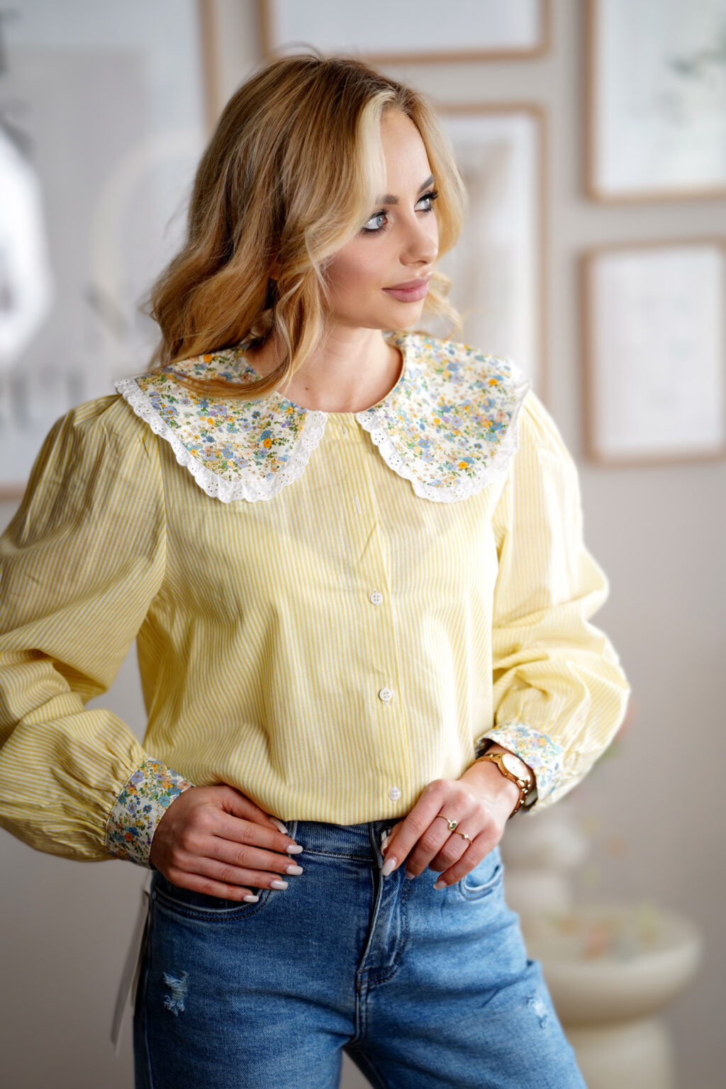 Bawełniana koszula z kołnierzykiem FLORA | żółta 💛
