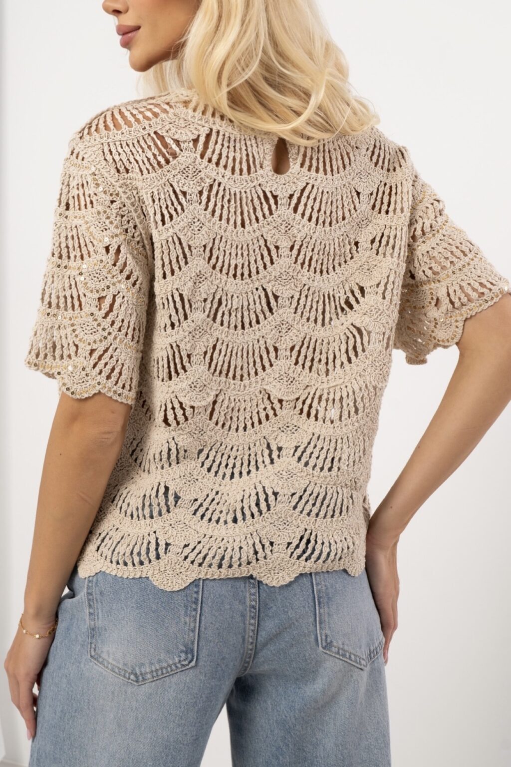 Beżowa ażurowa bluzka SHEILA z cekinami | ✨