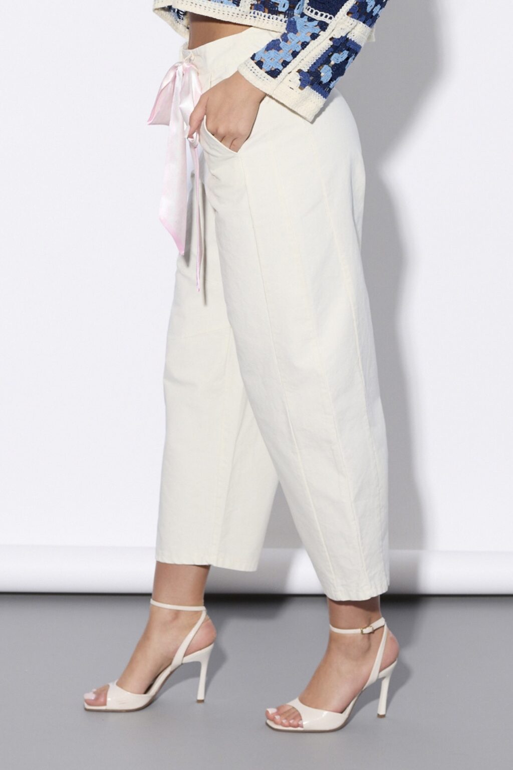Spodnie ELI bawełniane z ozdobną szarfą | beżowe ✨