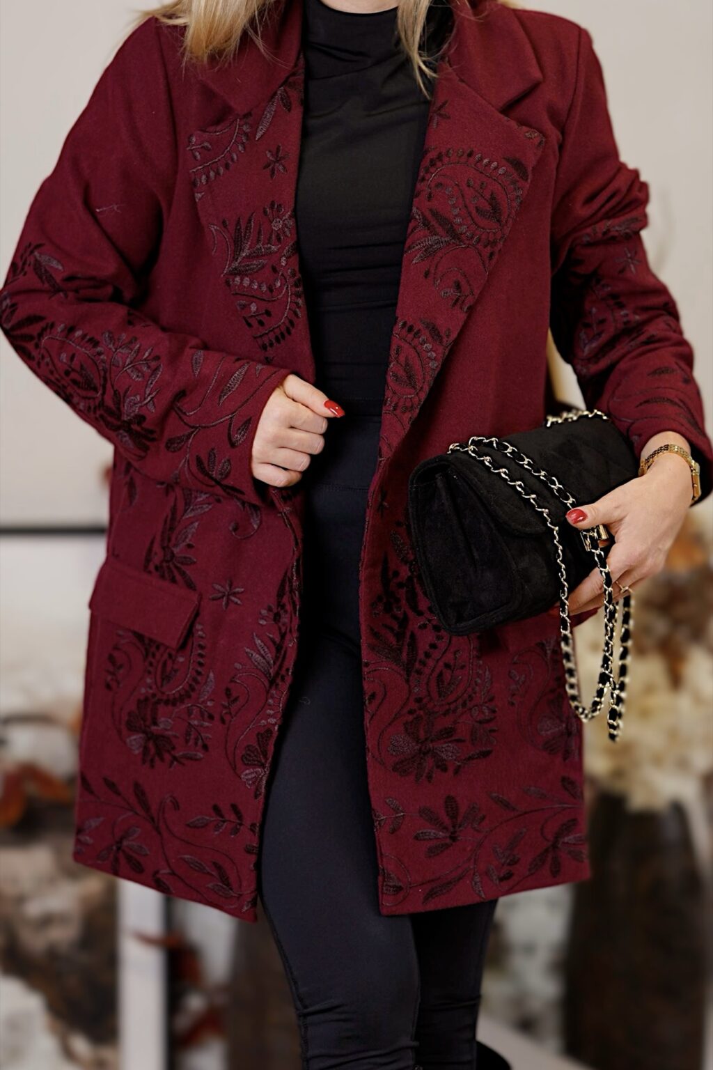 „Royal Vintage” to marynarka, która wygląda jak projekt z paryskiego atelier. Haftowane detale dodają jej unikatowego charakteru, a pasek w zestawie pięknie podkreśla talię. Idealna do pracy, na spotkania czy wieczorne wyjścia – łączy elegancję z nutą ekstrawagancji.