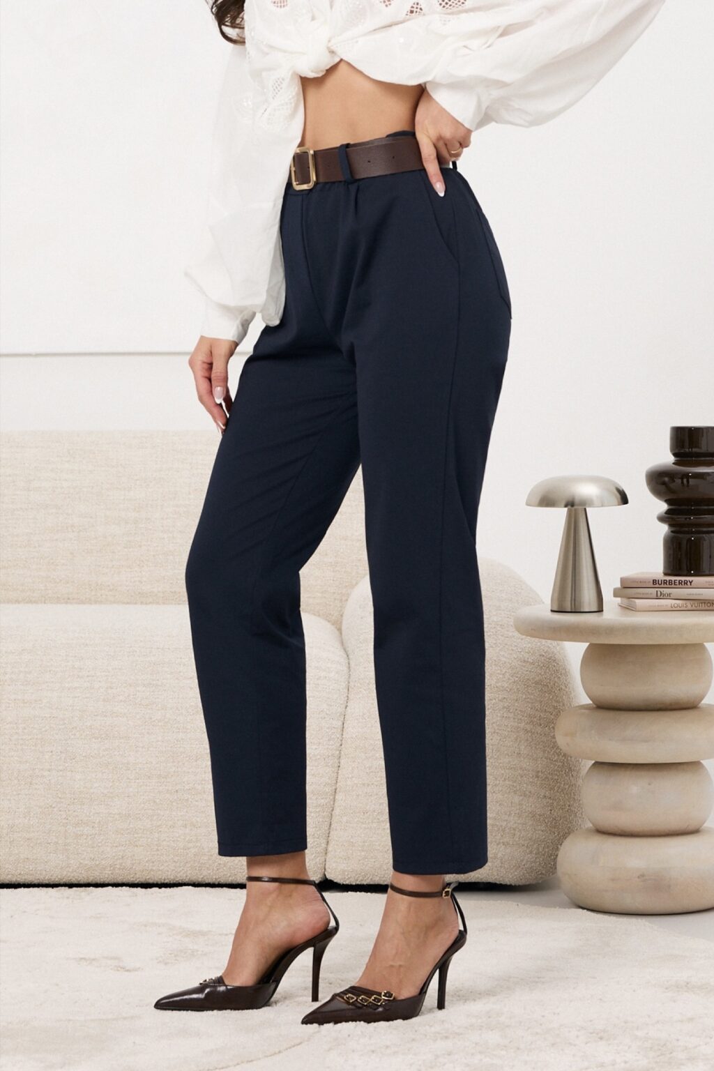 Eleganckie spodnie z paskiem NAVY | wiskoza bawełna