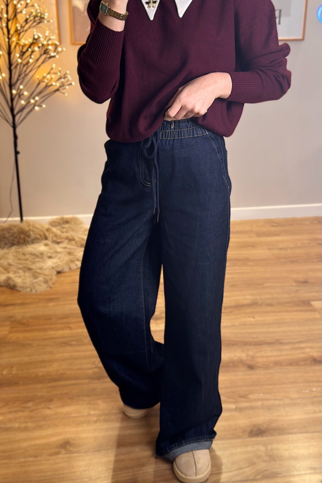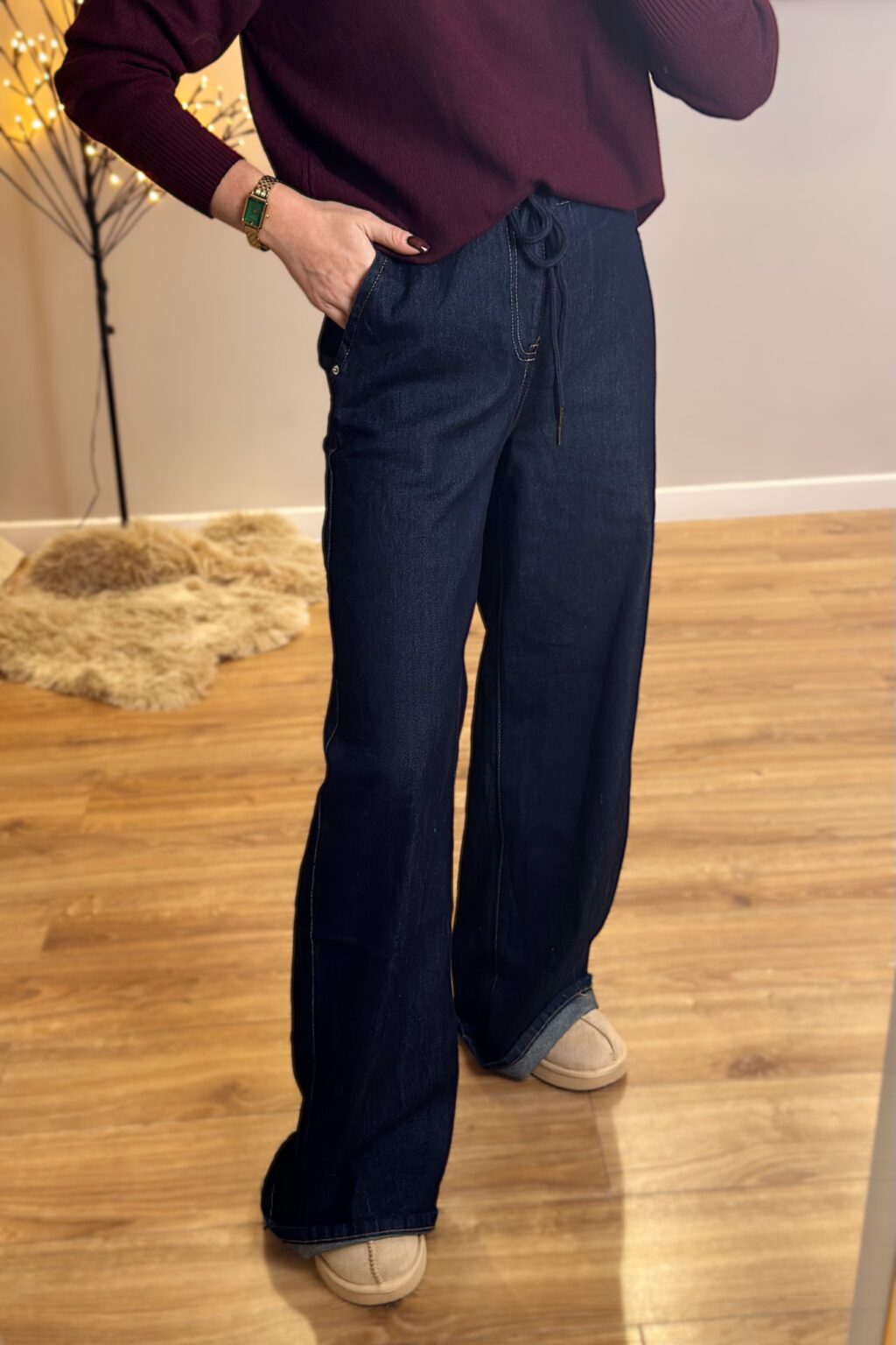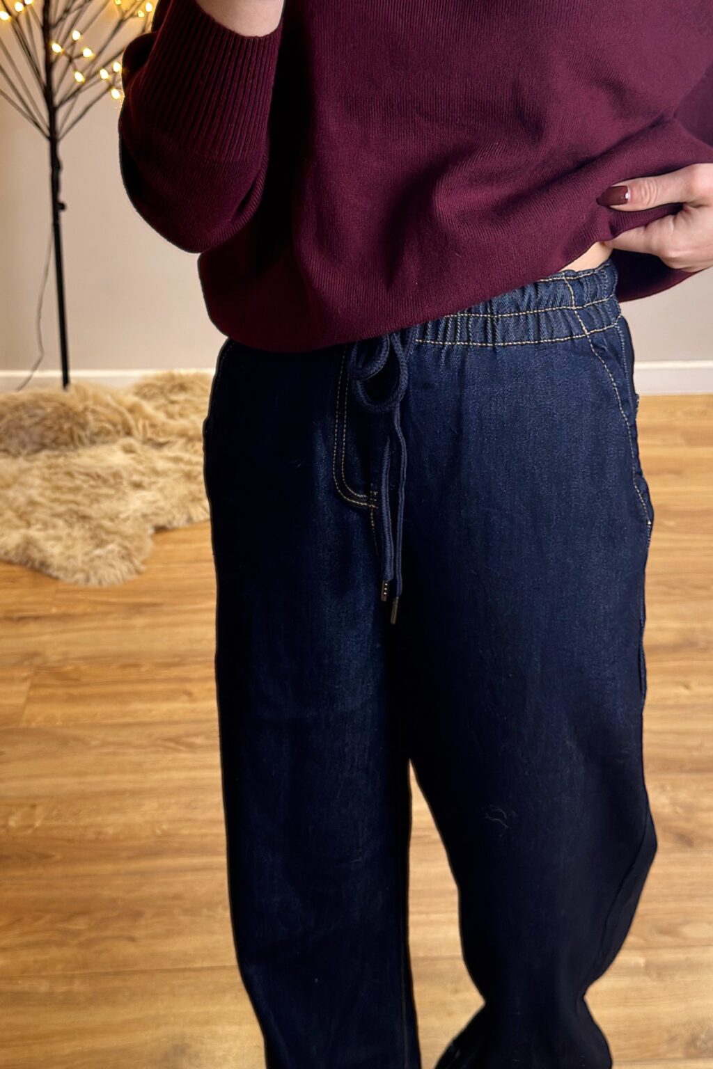 Granatowe spodnie jeansowe z wiązaniem CITY