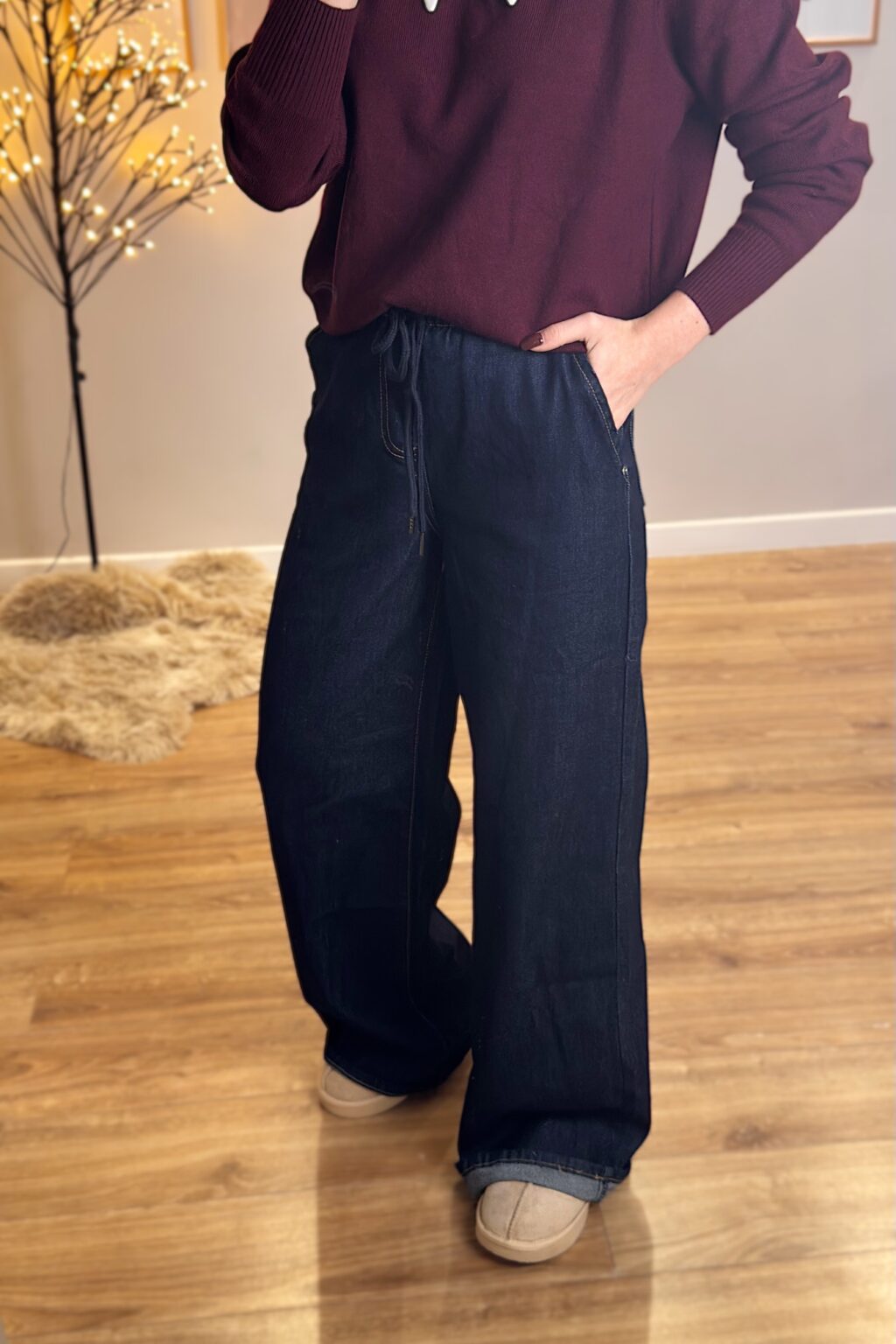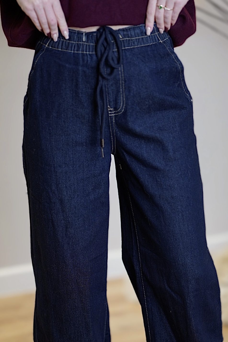 Jeansy CITY to idealny balans pomiędzy luzem a elegancją. Ich lekko rozszerzany, wygodny krój i wiązanie w pasie nadają im nonszalancki charakter inspirowany paryskim stylem effortless chic.