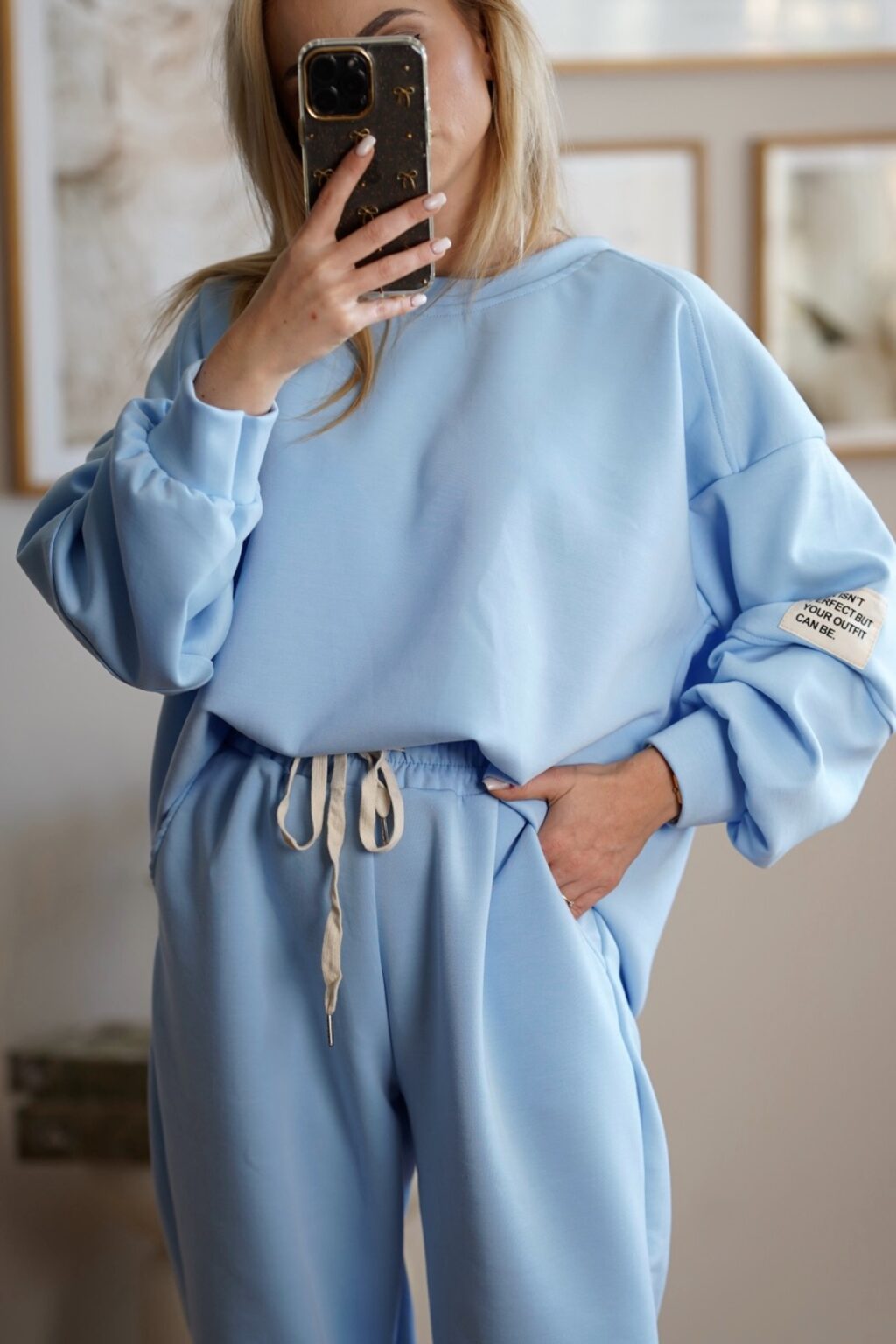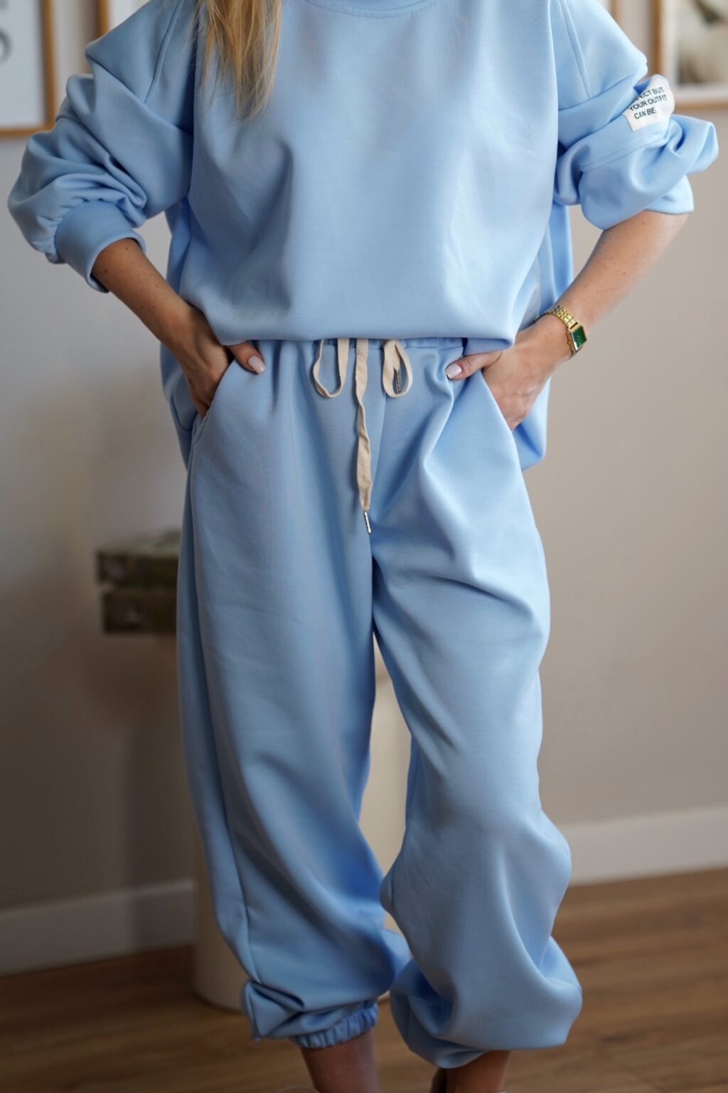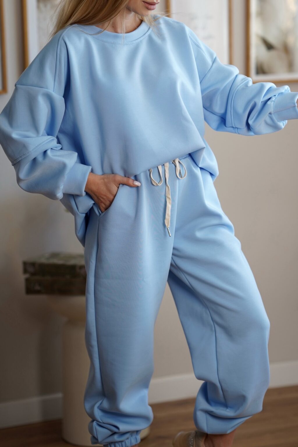 Stylowy komplet dresowy wykonany z miękkiej i elastycznej dzianiny, która zapewnia maksymalny komfort noszenia przez cały dzień. Luźna bluza oraz spodnie z elastycznym pasem tworzą wygodny, a jednocześnie estetyczny zestaw idealny zarówno do domu, jak i na co dzień. Pastelowe kolory nadają całości lekkości i nowoczesnego charakteru.