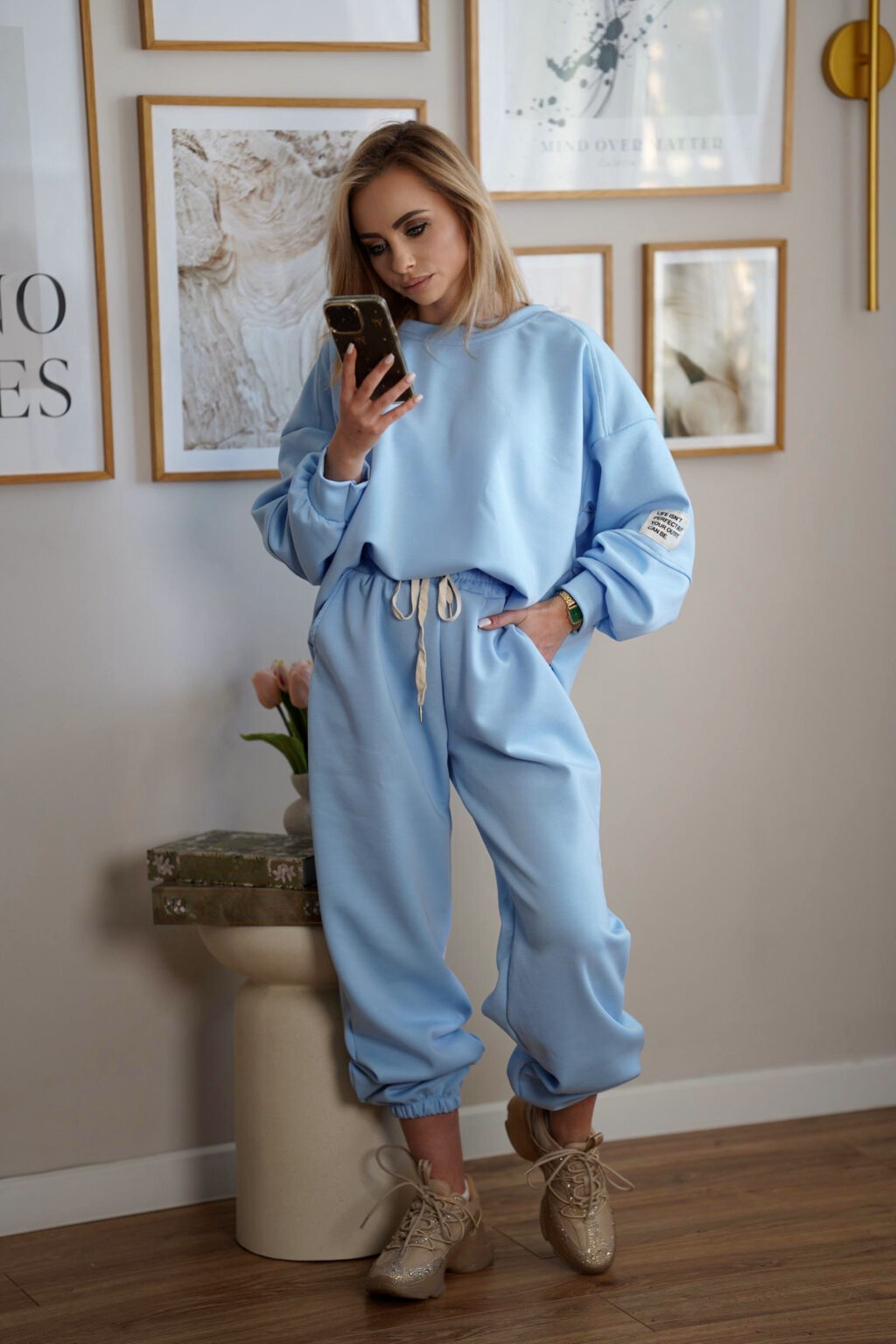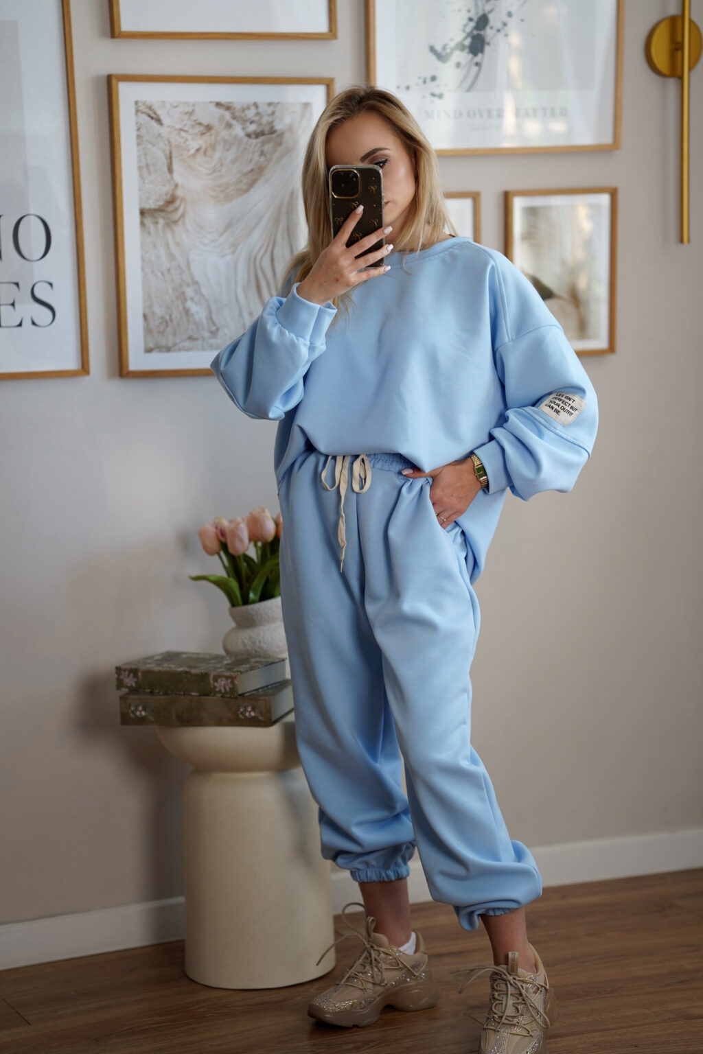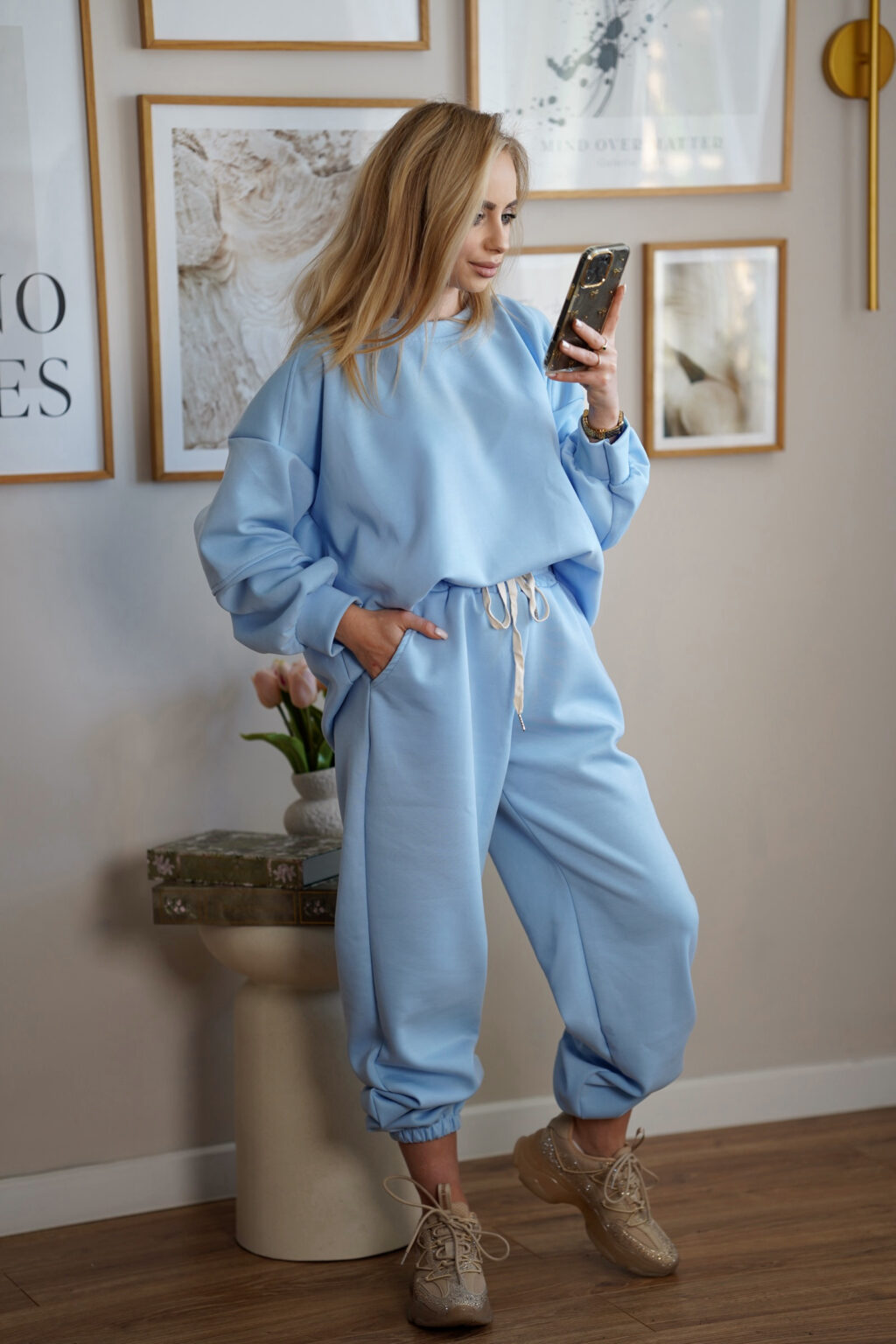 Stylowy komplet dresowy wykonany z miękkiej i elastycznej dzianiny, która zapewnia maksymalny komfort noszenia przez cały dzień. Luźna bluza oraz spodnie z elastycznym pasem tworzą wygodny, a jednocześnie estetyczny zestaw idealny zarówno do domu, jak i na co dzień. Pastelowe kolory nadają całości lekkości i nowoczesnego charakteru.