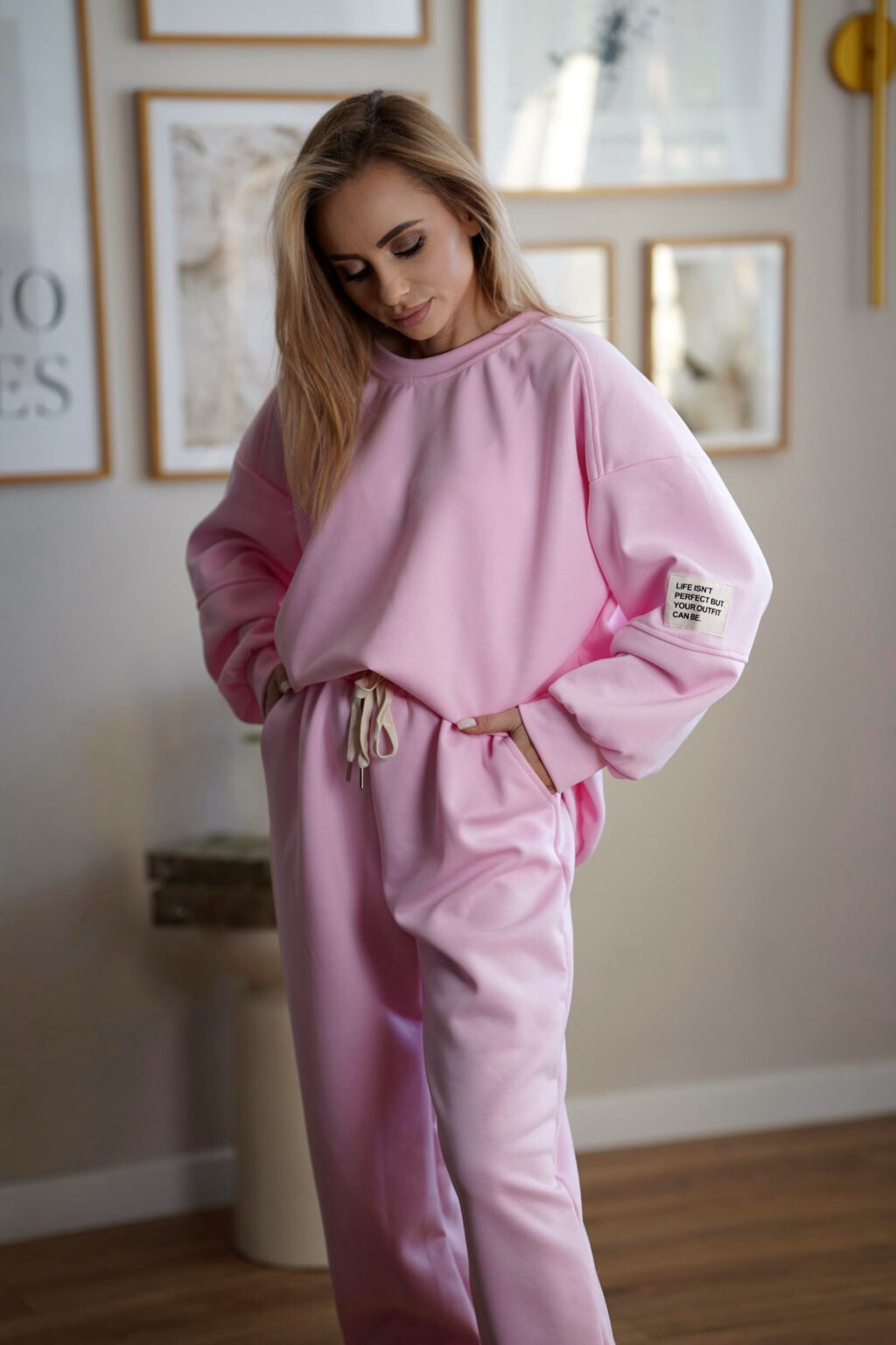 Stylowy komplet dresowy wykonany z miękkiej i elastycznej dzianiny, która zapewnia maksymalny komfort noszenia przez cały dzień. Luźna bluza oraz spodnie z elastycznym pasem tworzą wygodny, a jednocześnie estetyczny zestaw idealny zarówno do domu, jak i na co dzień. Pastelowe kolory nadają całości lekkości i nowoczesnego charakteru.