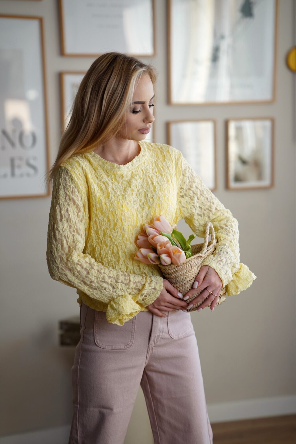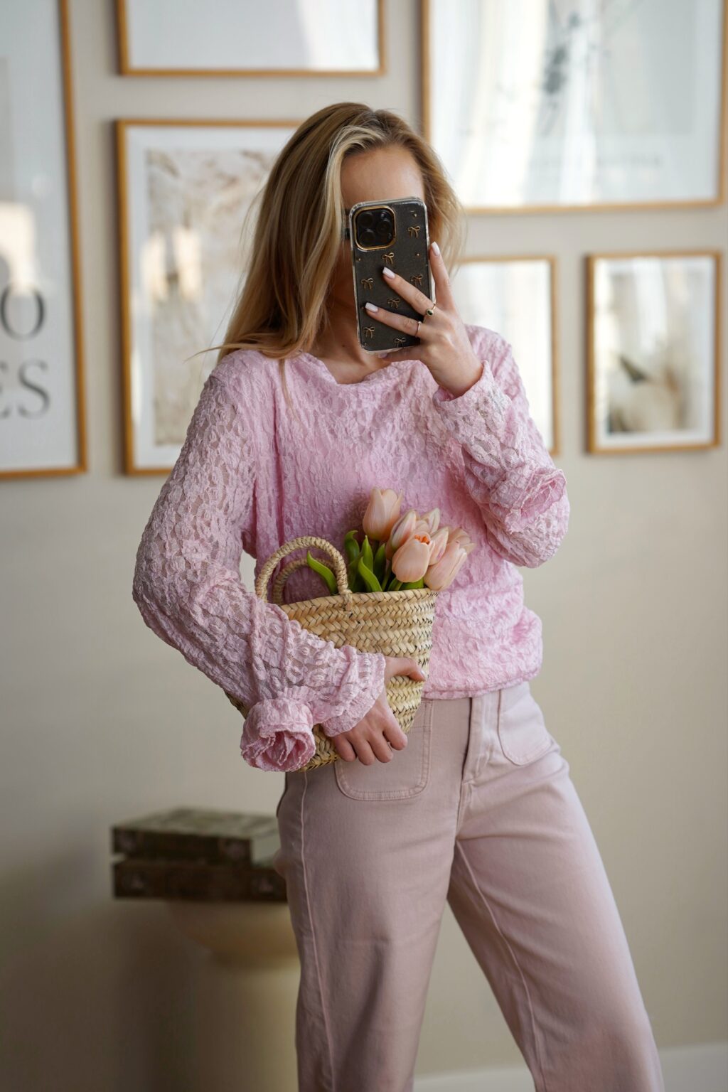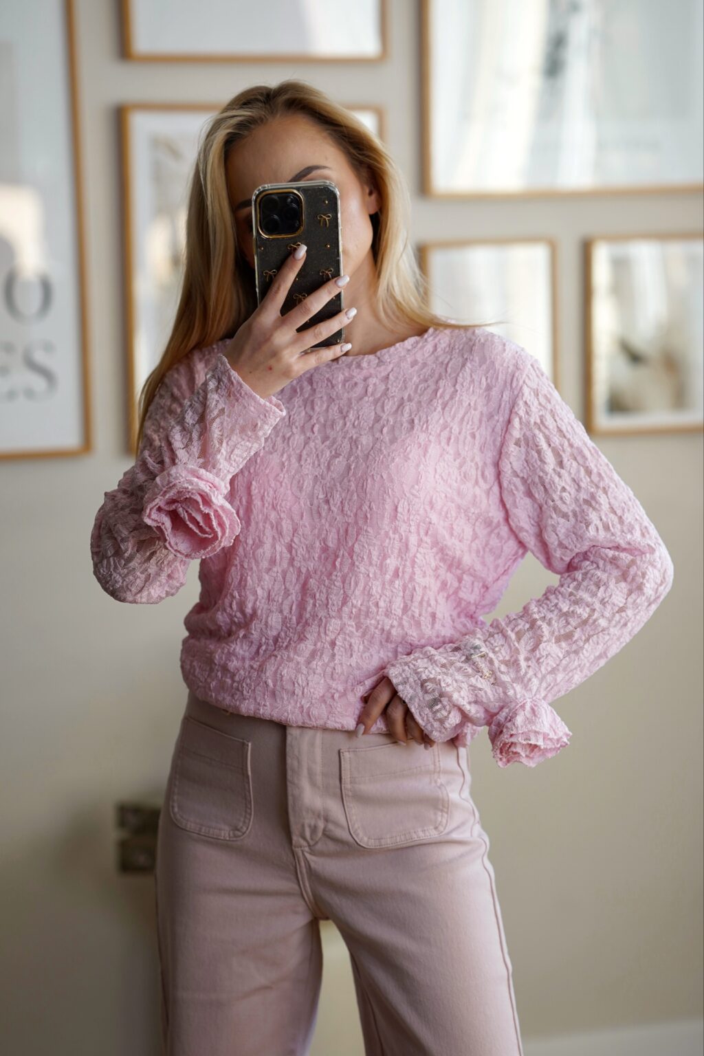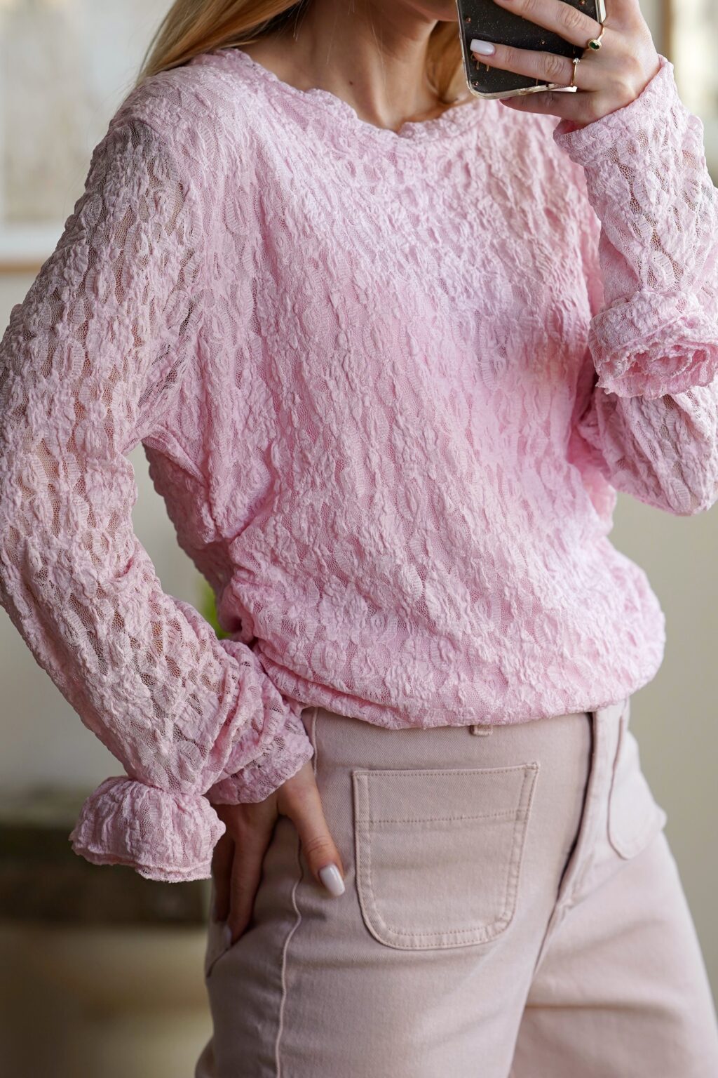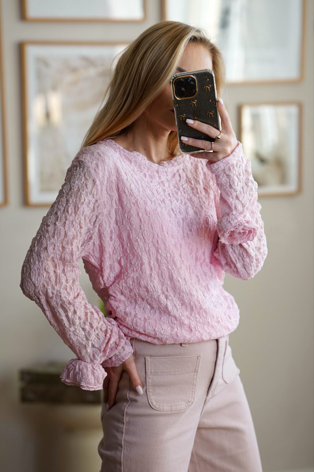 Koronkowa bluzka z kwiatem ROSSIE | różowa