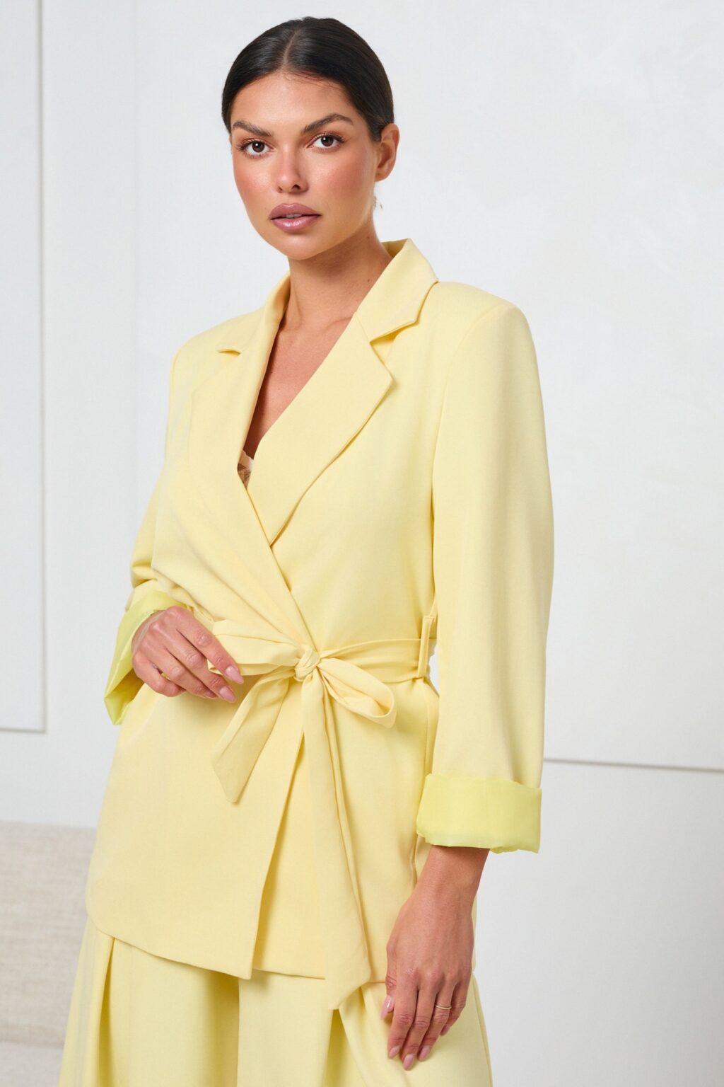 Kopertowa marynarka z wiązaniem SOFT PASTEL | żółty
