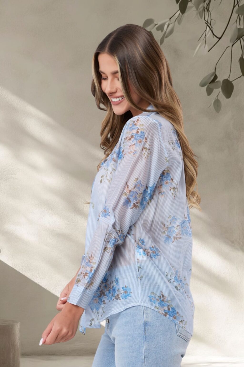 🩵 Koszula w paski z kwiatowym wzorem SKY | Tencel