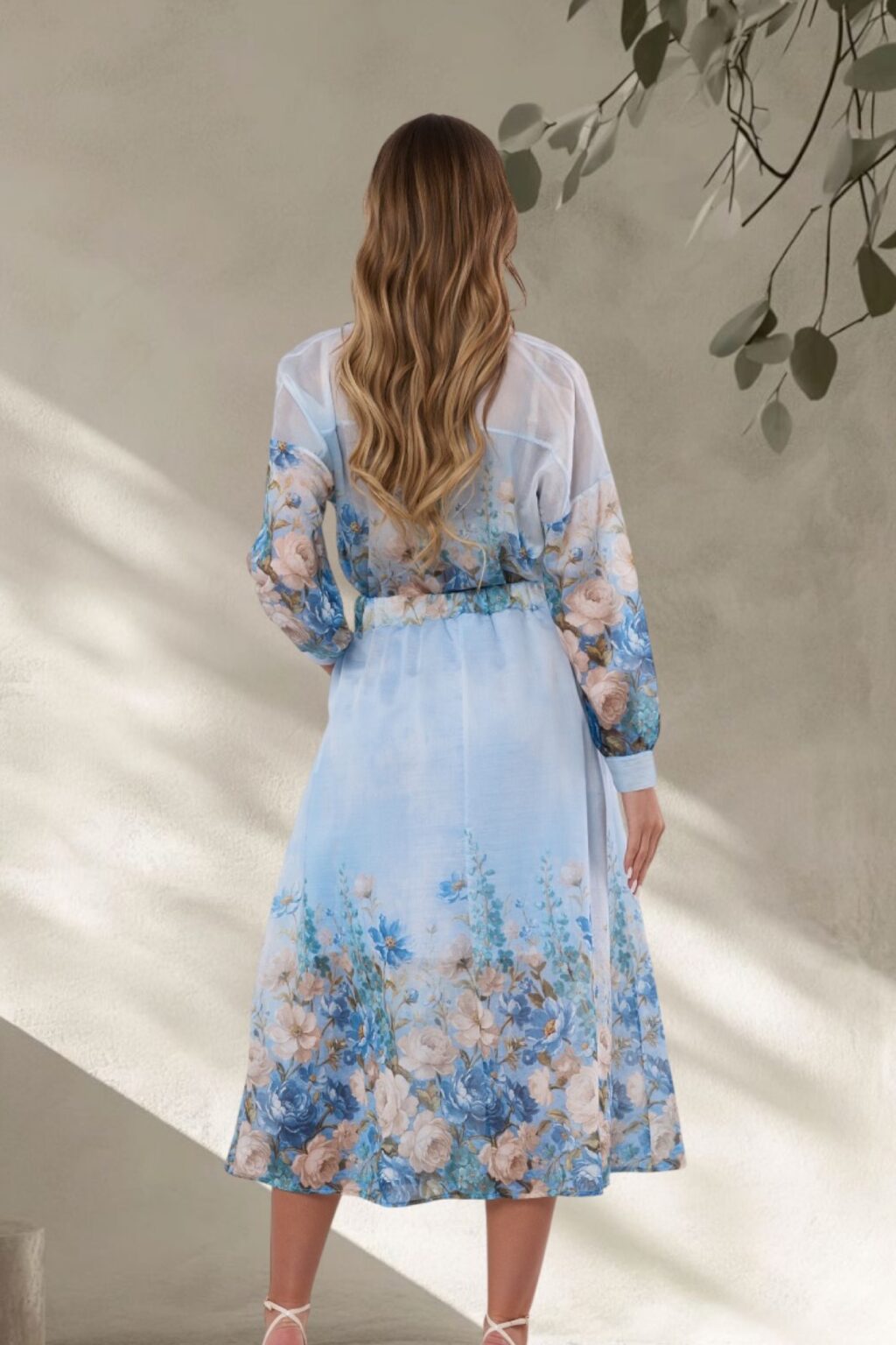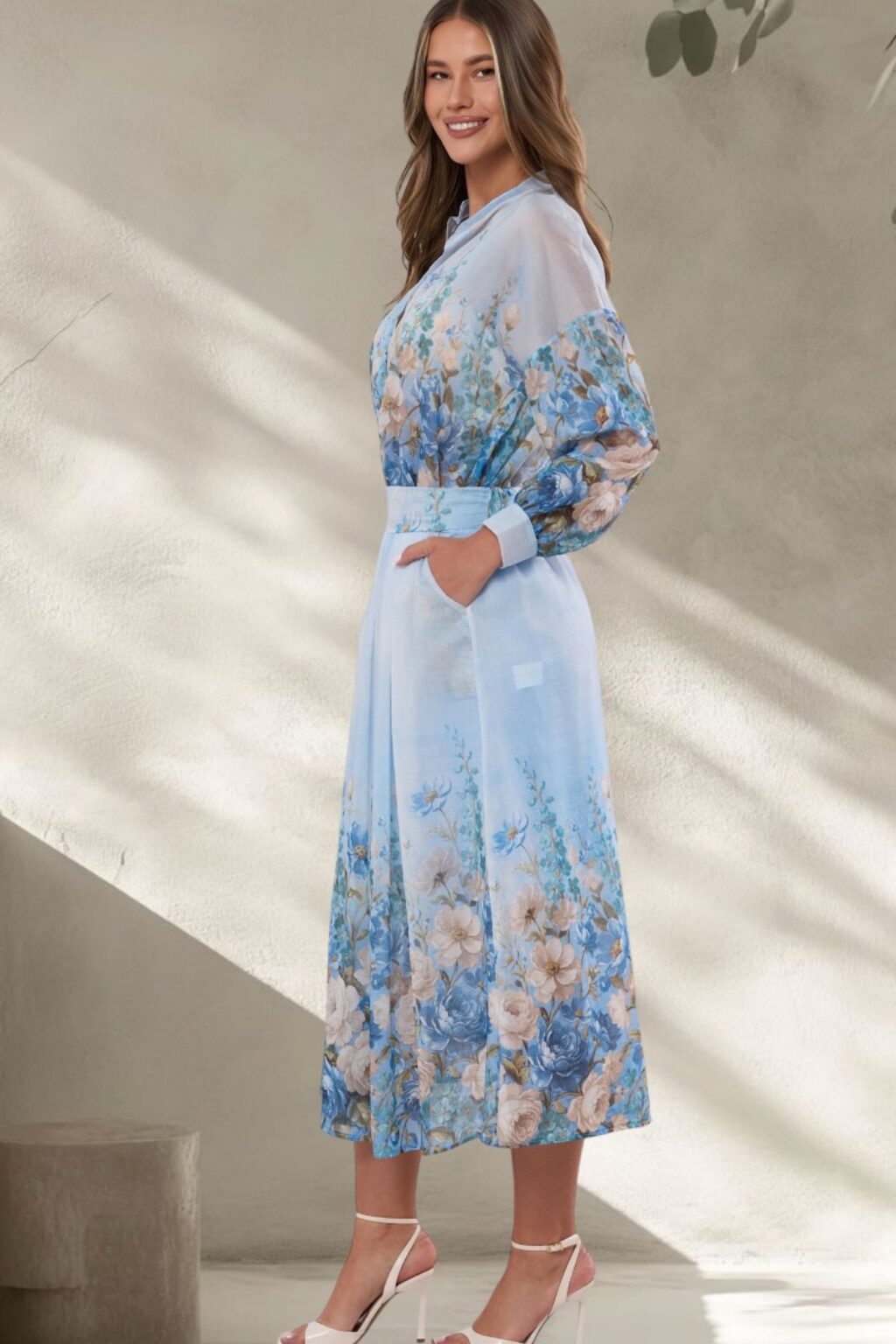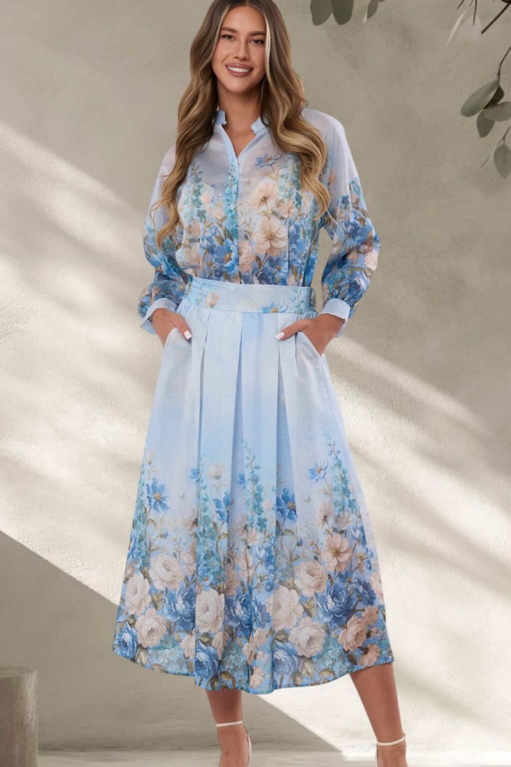 🩵 Niebieska spódnica z motywem kwiatów | FLORES