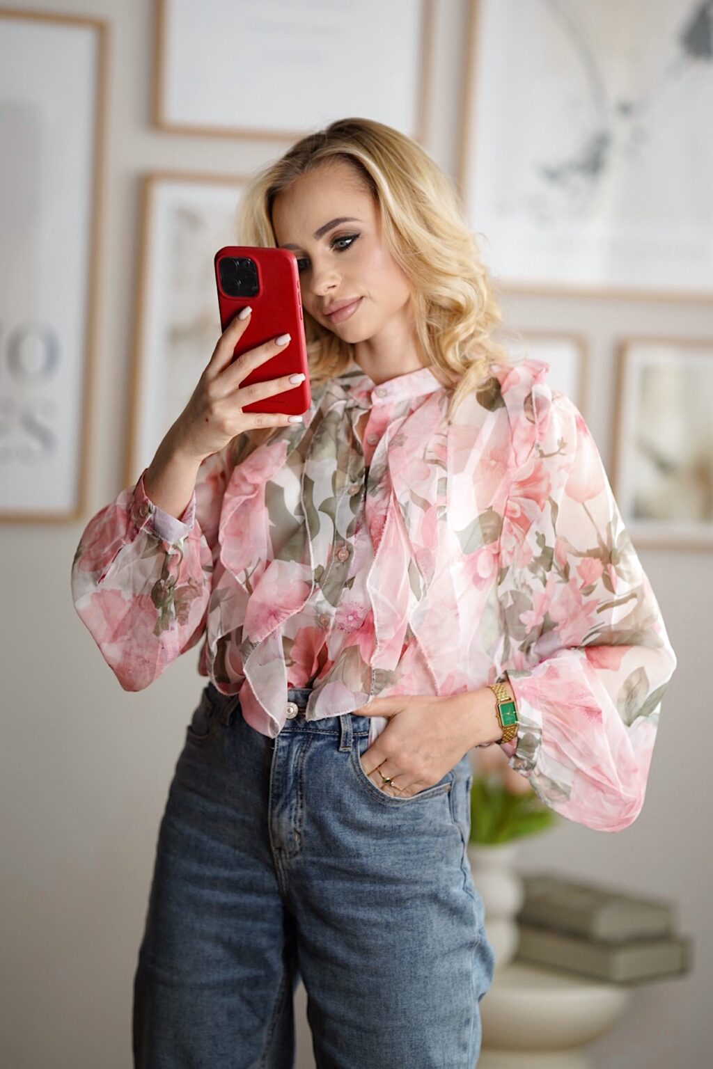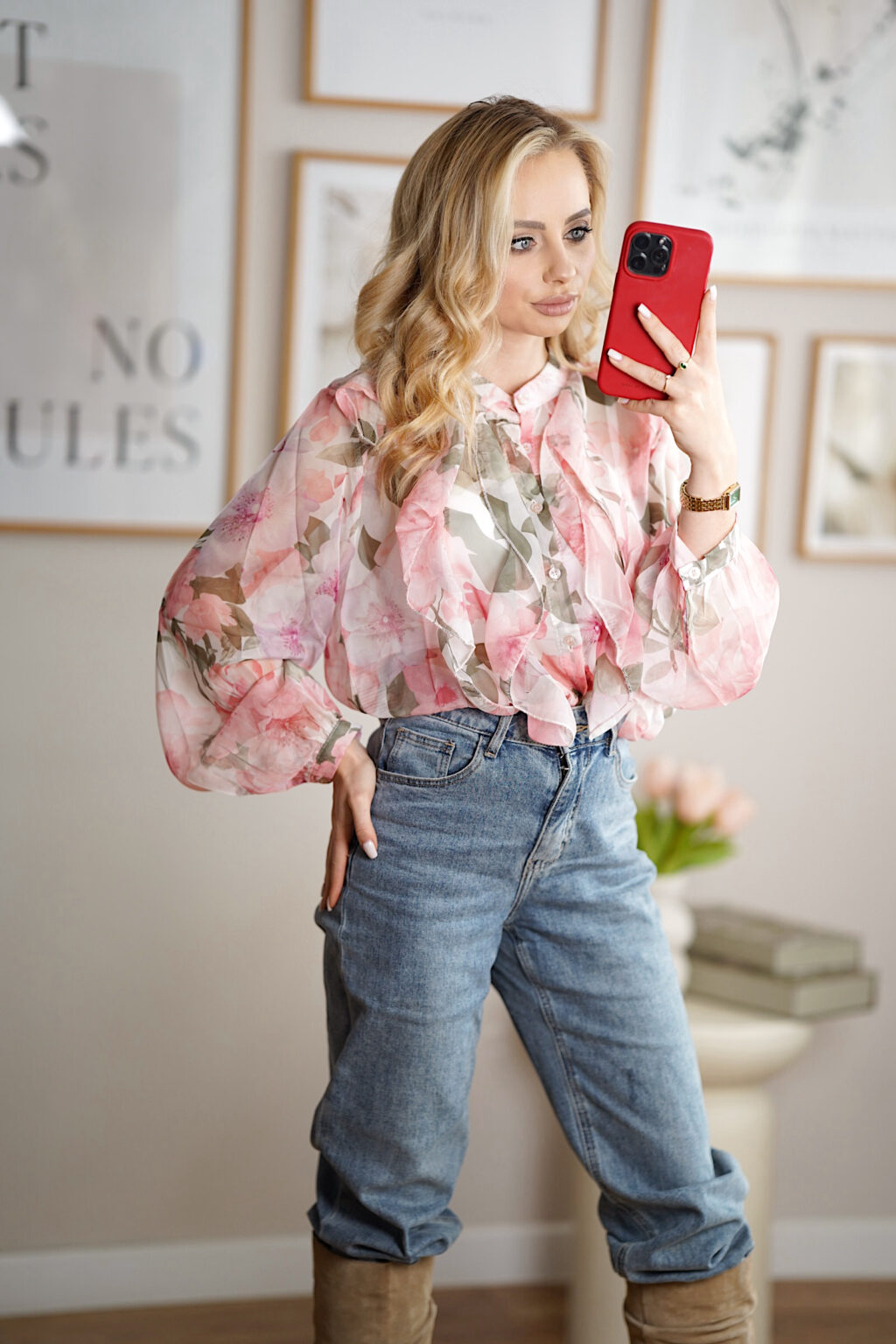 Różowa koszula z falbankami to propozycja dla kobiet, które kochają romantyczne, subtelne detale w nowoczesnym wydaniu. Lekki, zwiewny materiał pięknie układa się na sylwetce, a falbanki dodają całości lekkości i kobiecego wdzięku. To model idealny zarówno do codziennych stylizacji z jeansami, jak i bardziej eleganckich zestawów na wyjście czy spotkanie. Delikatny odcień różu rozświetla cerę i doskonale wpisuje się w aktualne trendy.