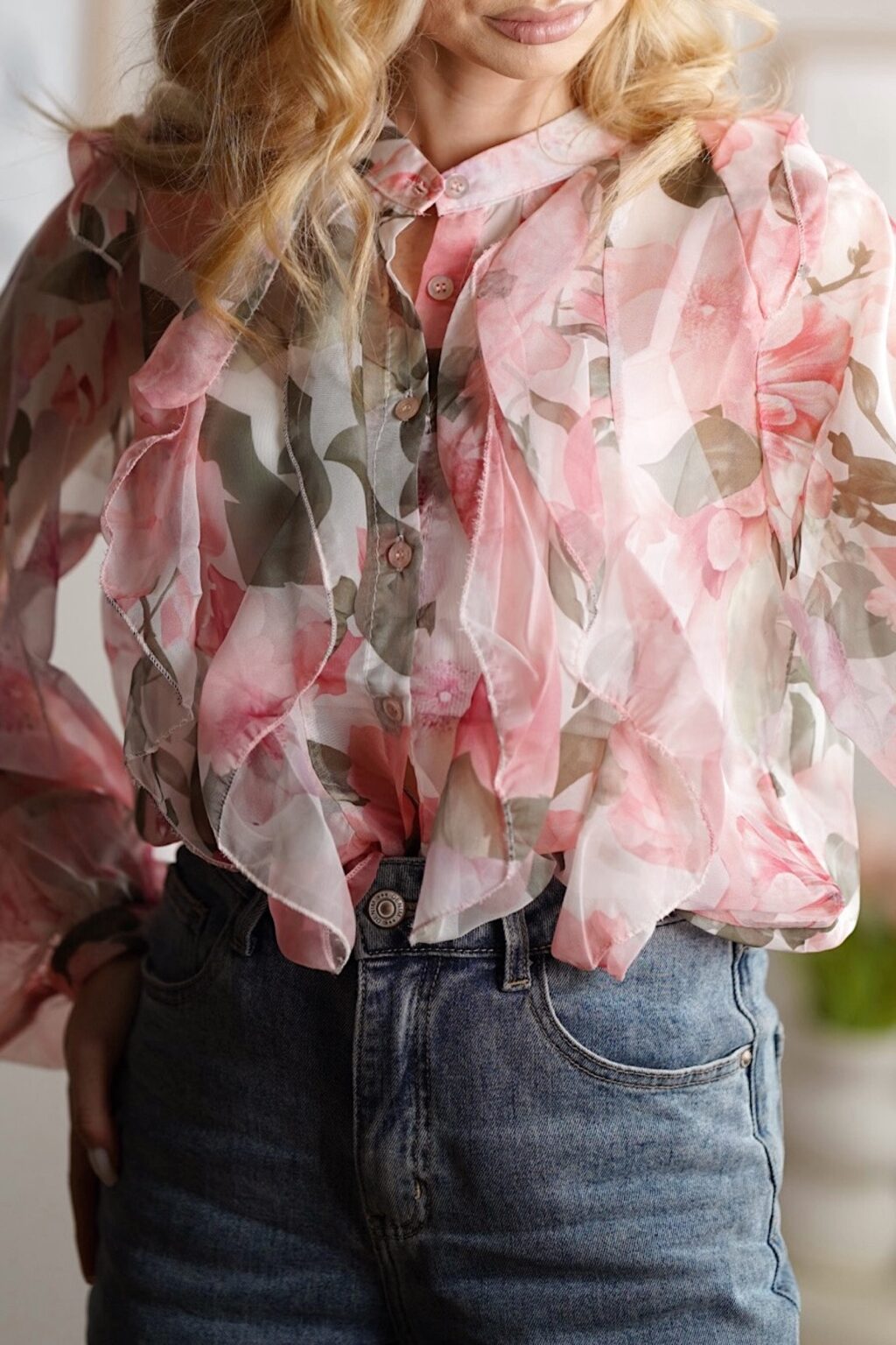 Różowa koszula z falbankami mgiełka | Blush Romance