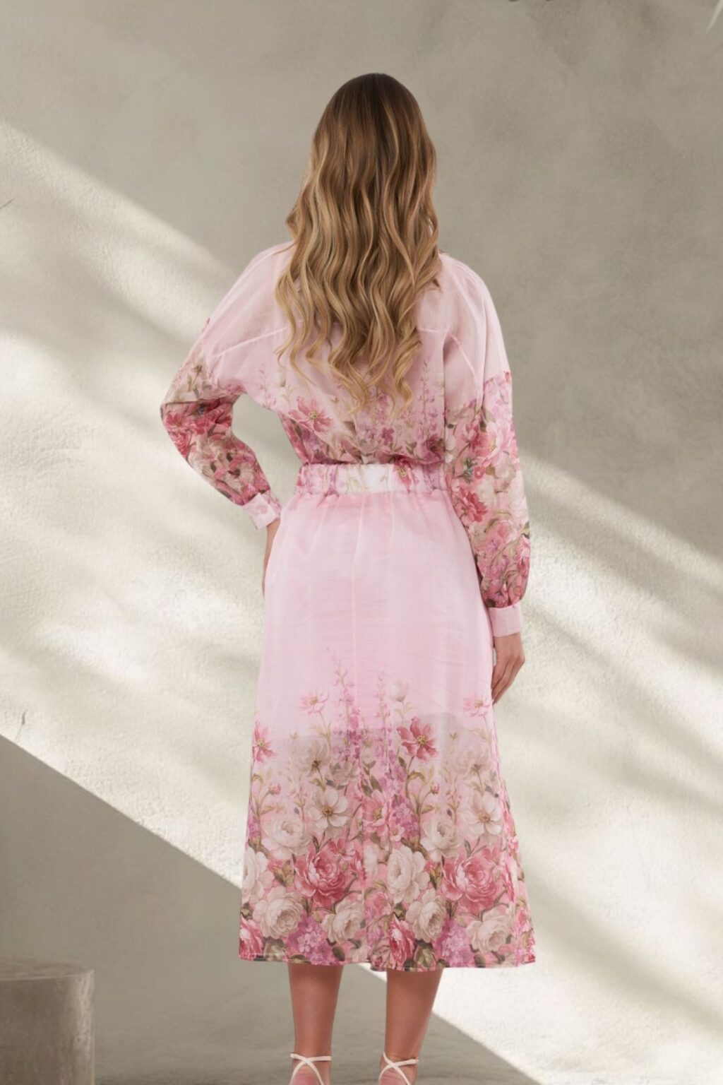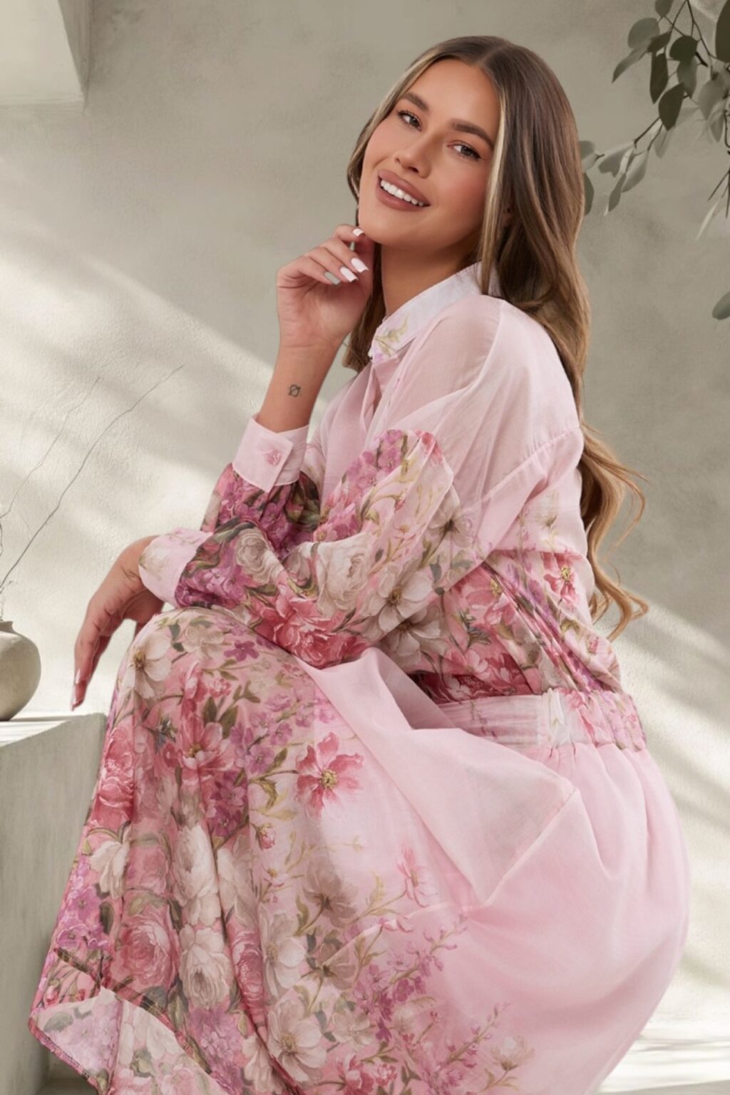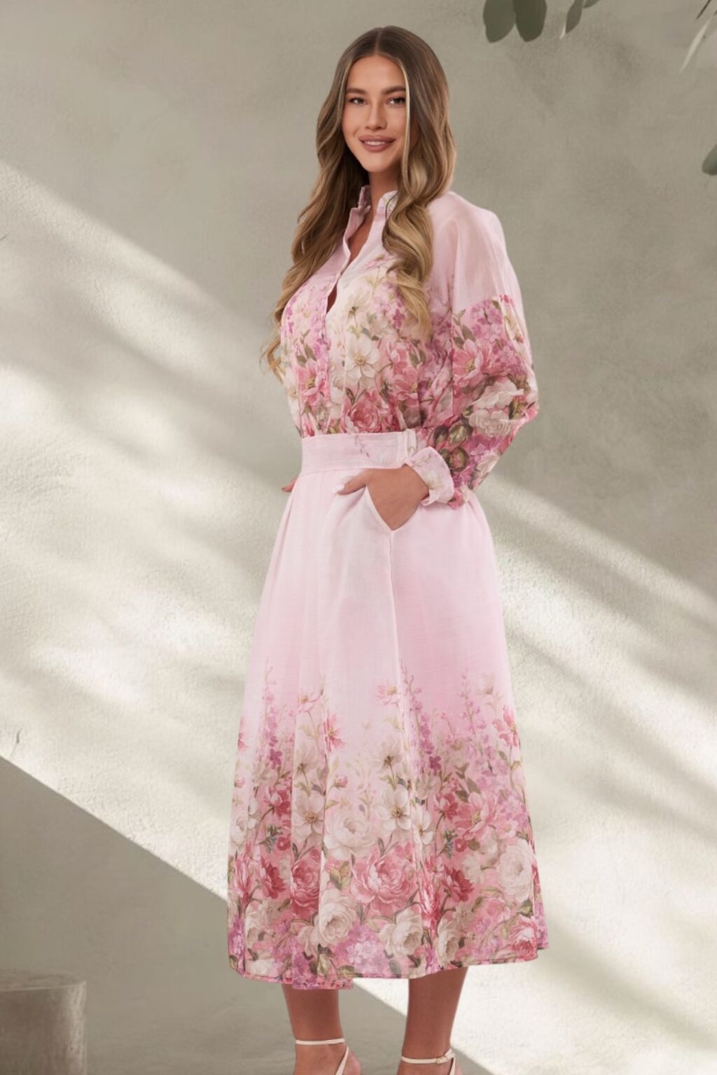 🩷 Różowa spódnica z motywem kwiatów | FLORES
