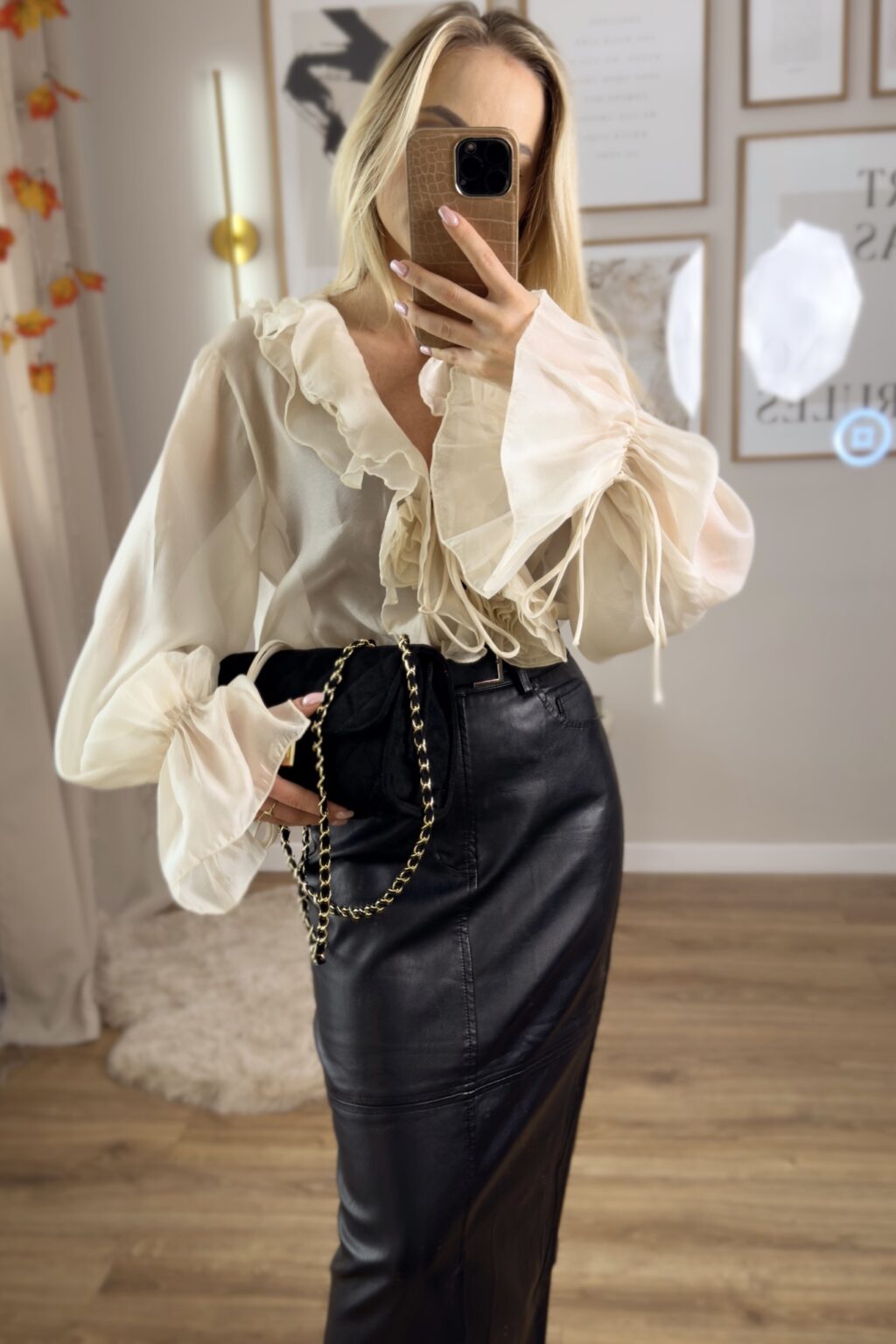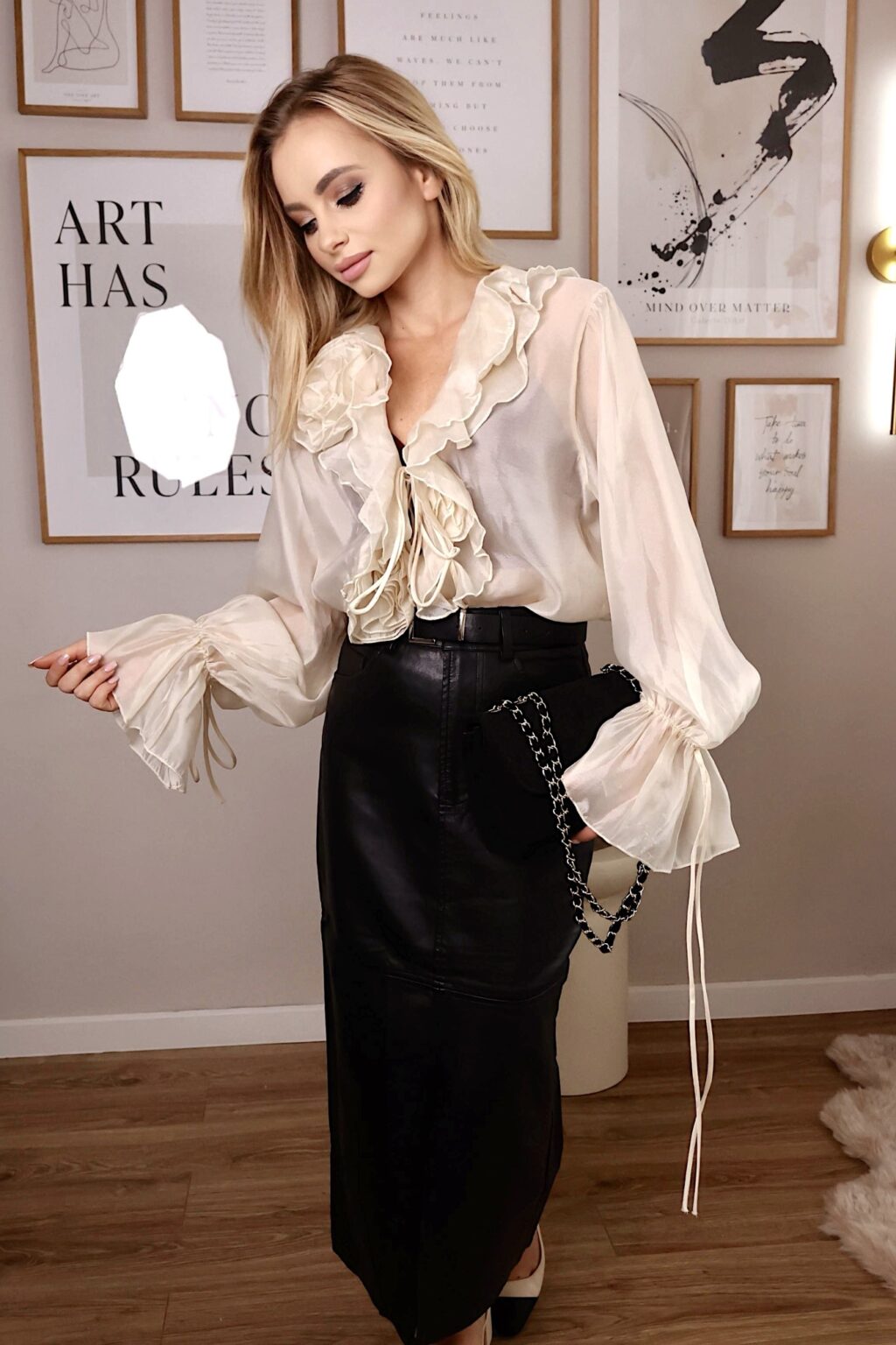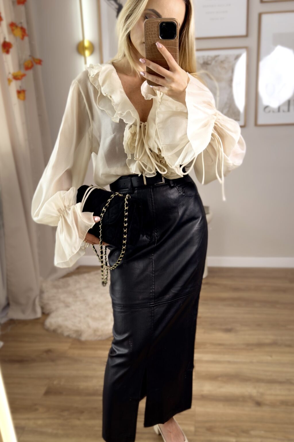 Klasyka i kobiecość w nowoczesnym wydaniu. Spódnica „Keep it” to model, który podkreśla sylwetkę i nadaje stylizacji wyrazistości. Wykonana z wysokiej jakości eko skóry, posiada pasek w talii, który pięknie ją podkreśla, oraz rozcięcie z przodu zapewniające komfort noszenia. Idealna zarówno do eleganckich koszul i botków, jak i do swetrów oversize i kozaków. Dostępna w rozmiarach XS–XL.