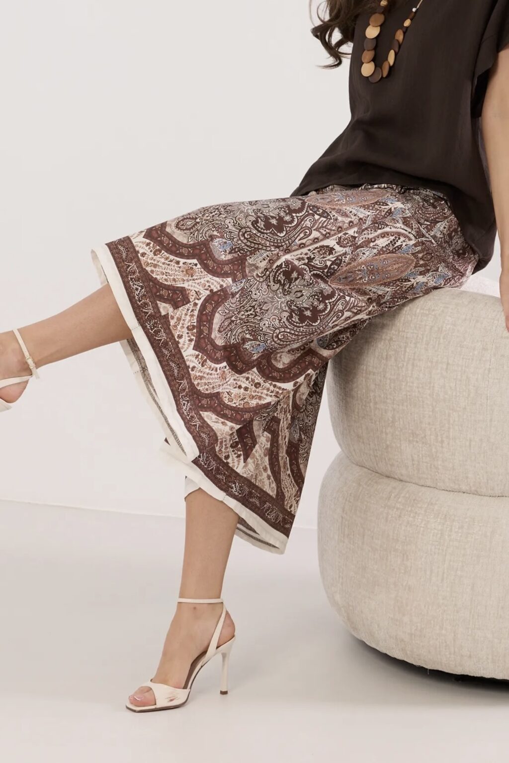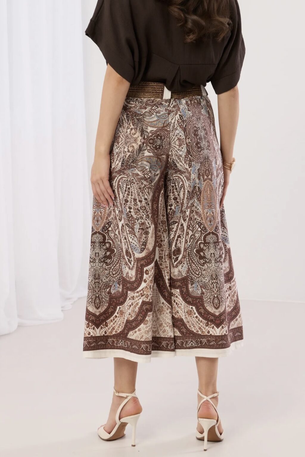 Spodnie culotty z paskiem | Paisley brązowe 🤎