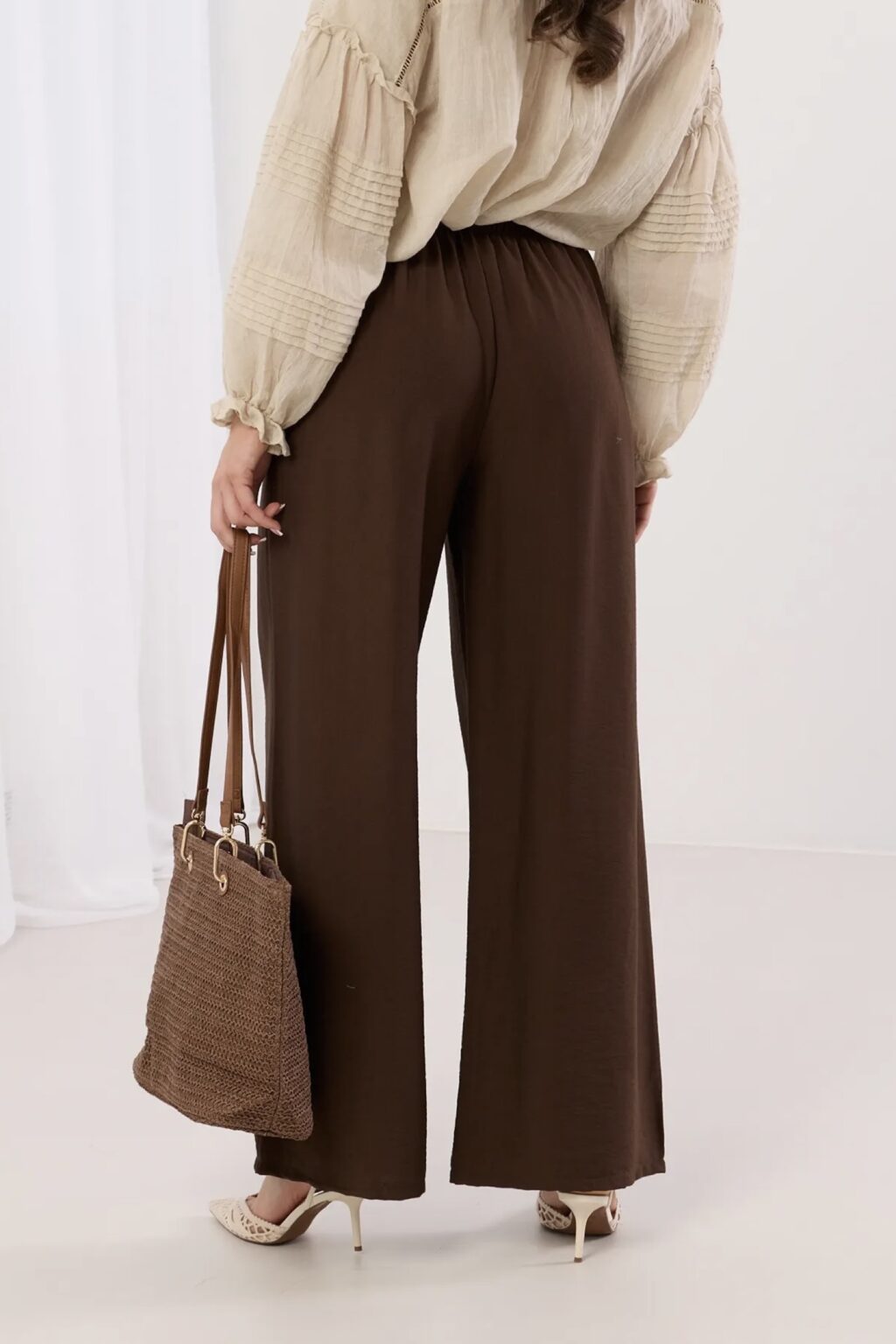 Spodnie z plecionym paskiem SUNDY | brązowe 🤎 wiskoza