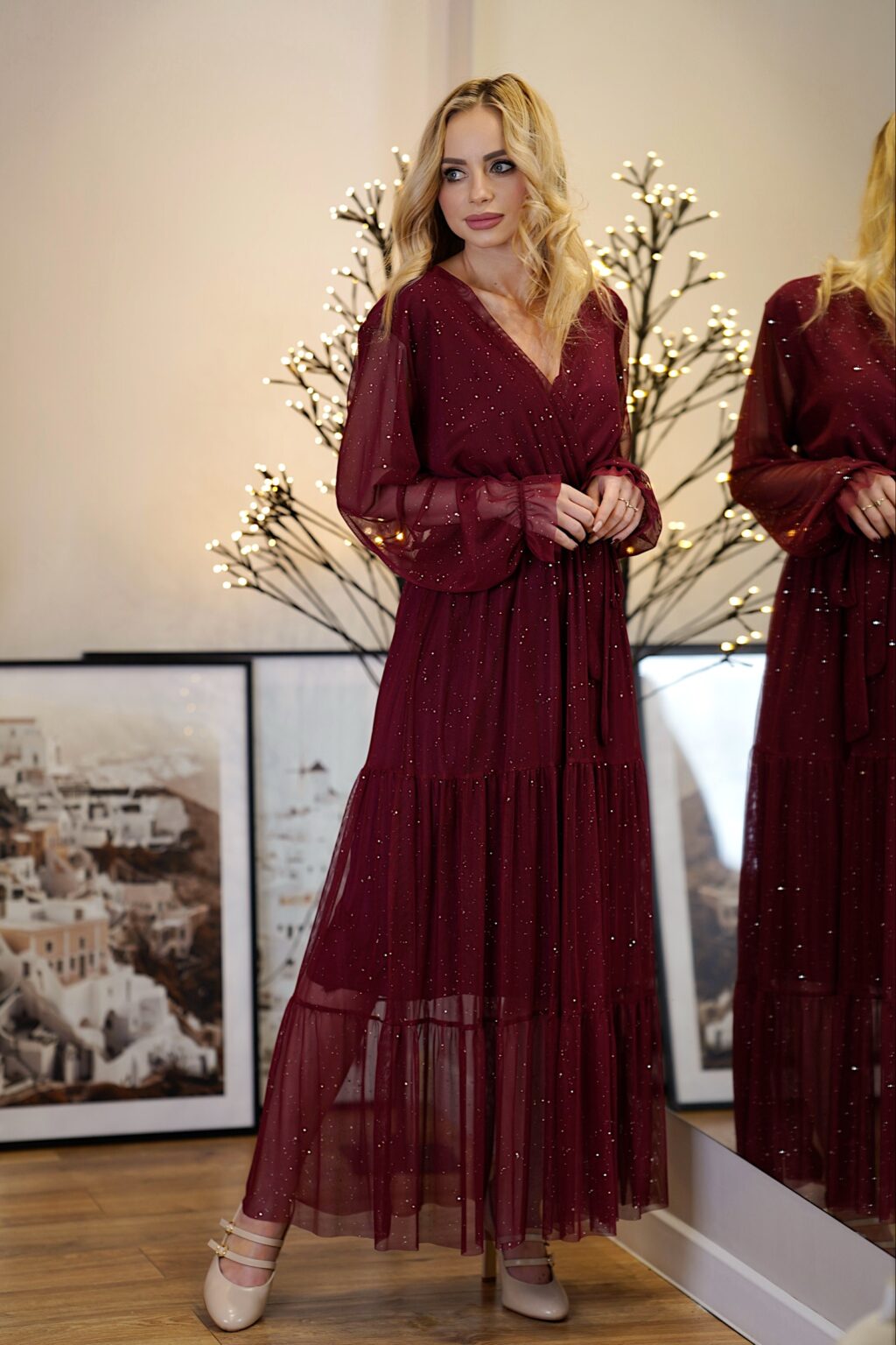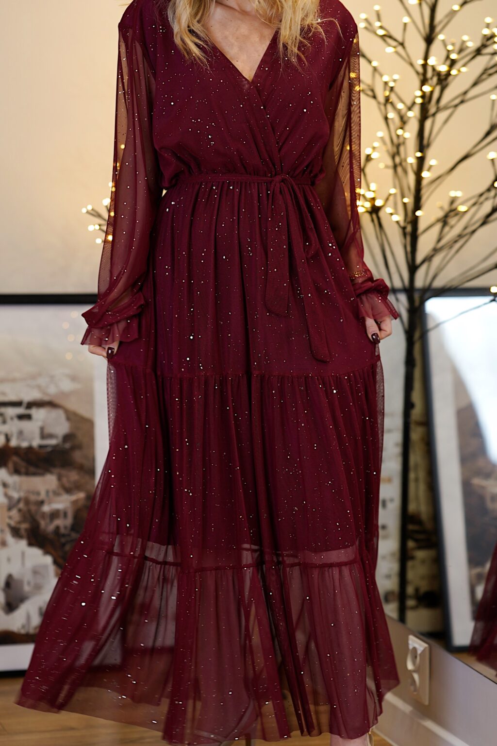 Połyskująca sukienka GLORIA | bordo
