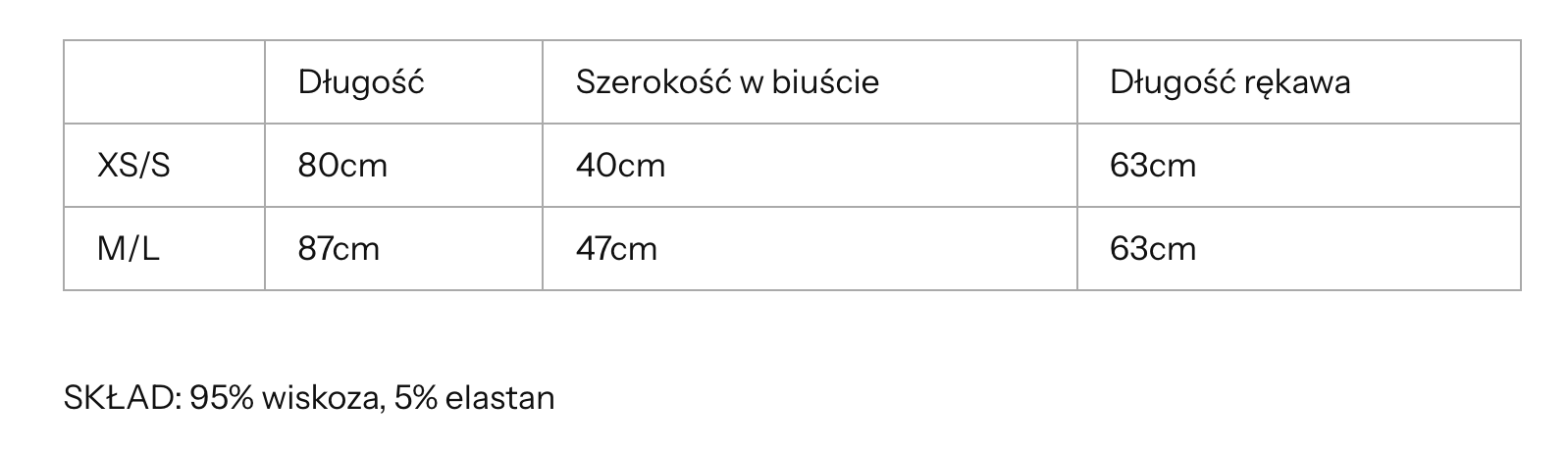 Ubrania mierzone na płasko! Poszczególne wymiary mogą różnić się +/- 1-2 cm.