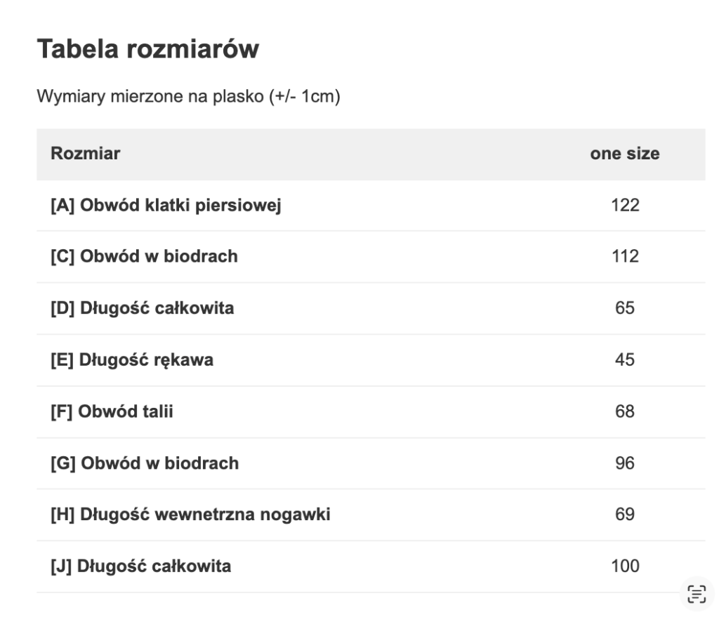 Ubrania mierzone na płasko! Poszczególne wymiary mogą różnić się +/- 1-2 cm. Modelka ma 155 cm wzrostu, na co dzień nosi rozmiar XS.