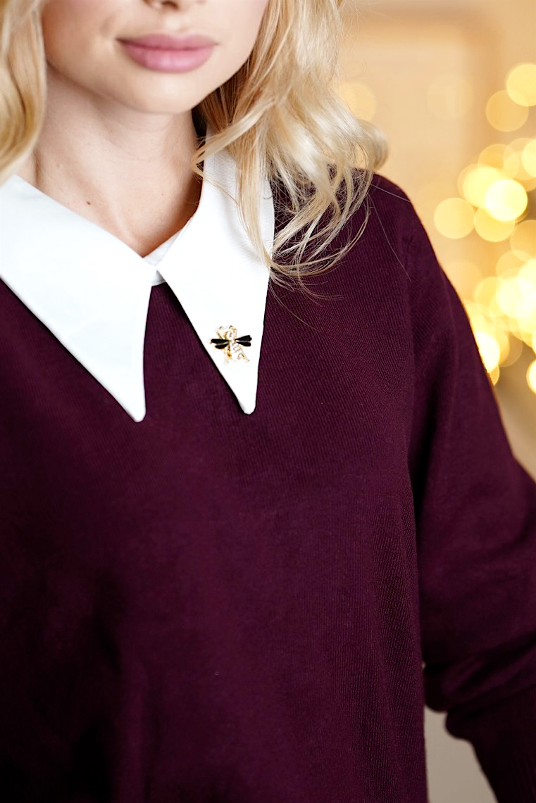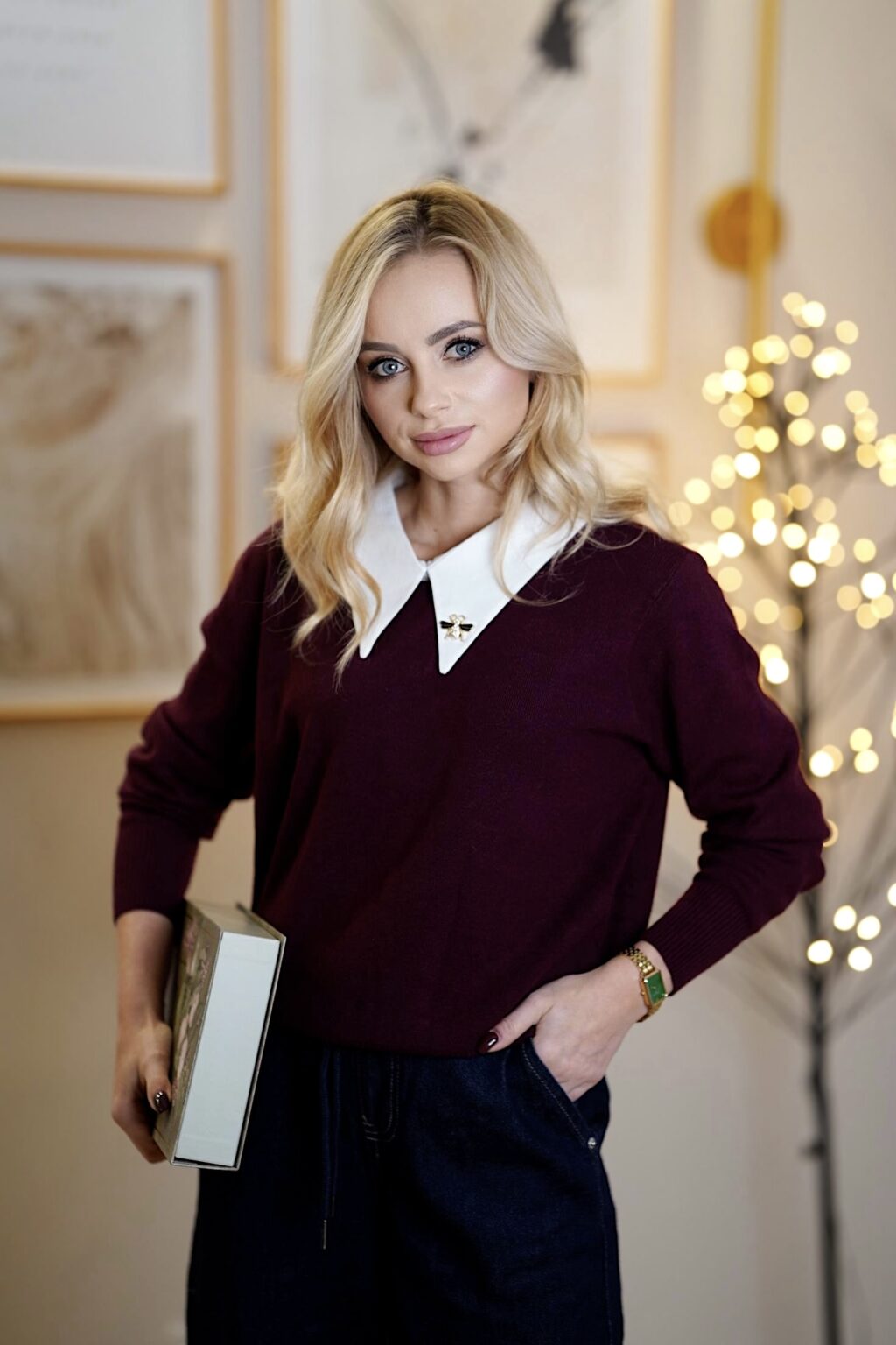 Sweterek z kołnierzykiem Lady Bee | burgund