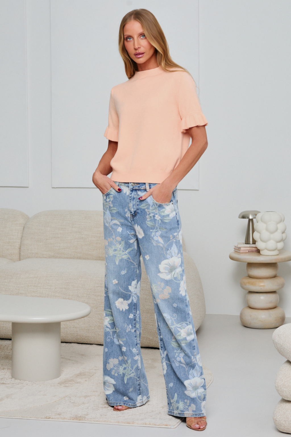Dzianinowy sweterek z falbanką TOUCH | morela